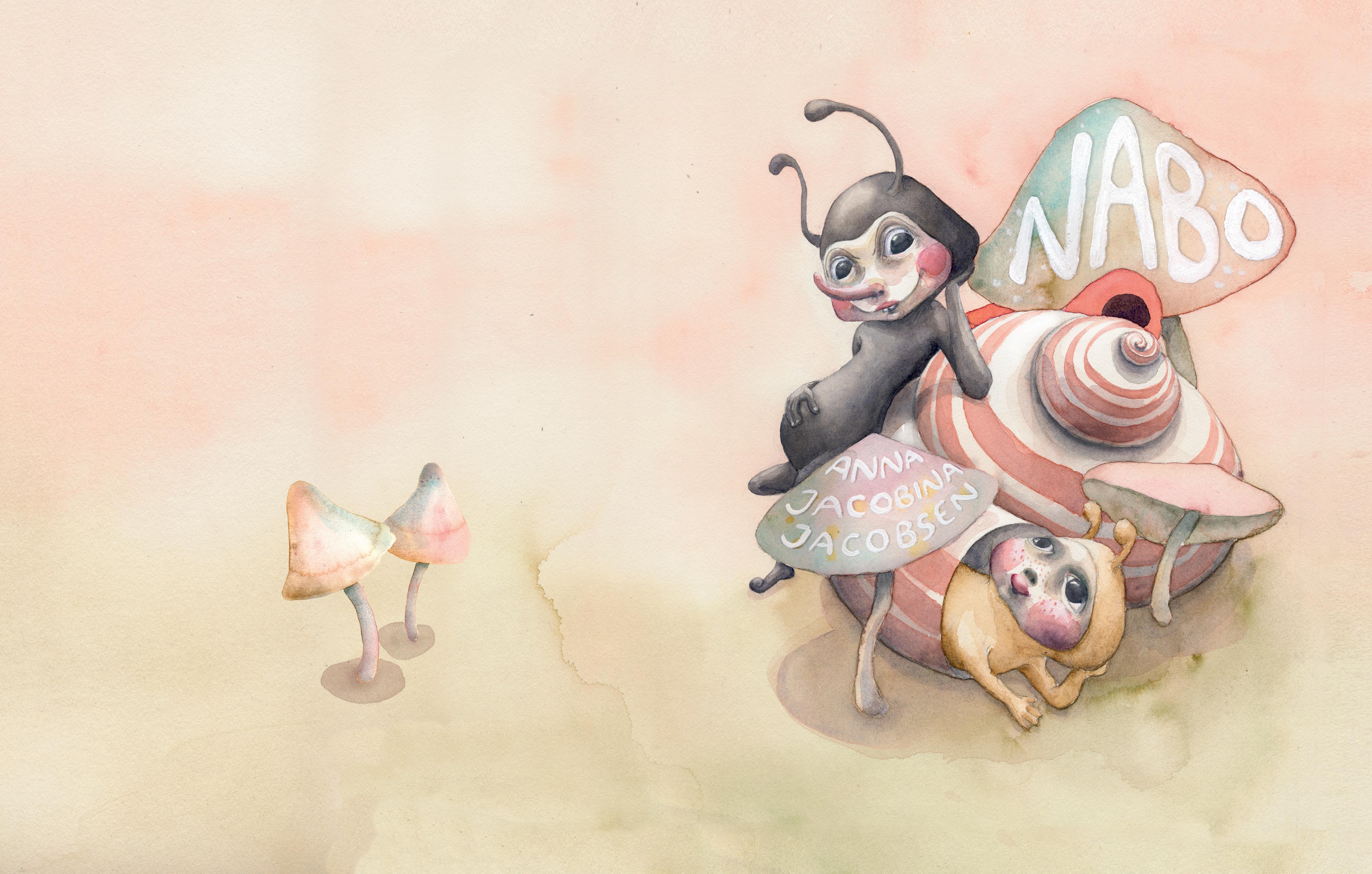 Nabo er en ordløs fortælling om den lidt introverte snegl og en sommerfugl med store armbevægelser, der lever side om side.