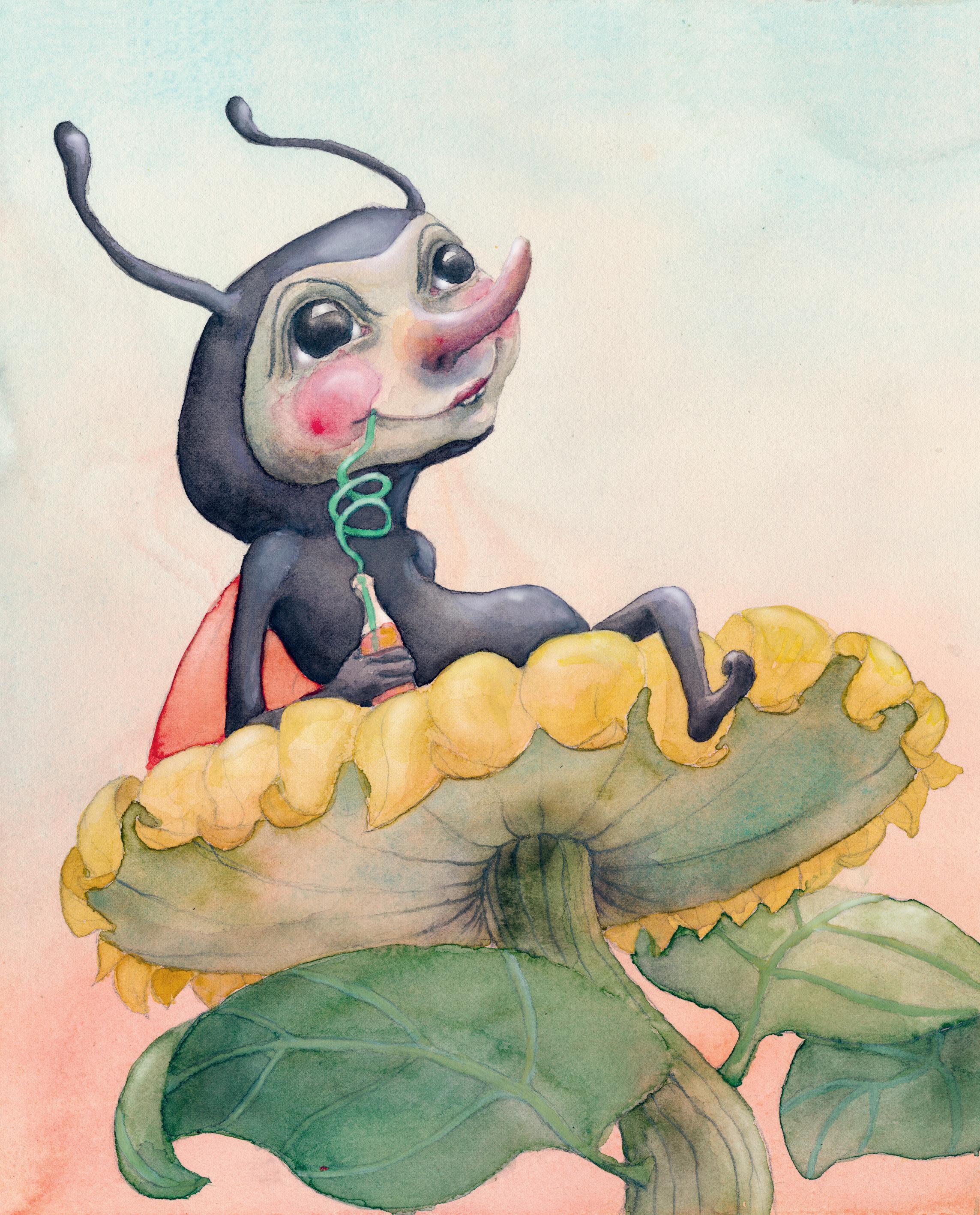 De bor begge i den samme solsikke – sommerfuglen oppe i toppen, og sneglen nede ved foden. De kender dog ikke hinanden, før sommerfuglen, gennemblødt af regn, falder ned og lander foran den regndansende snegl ...
