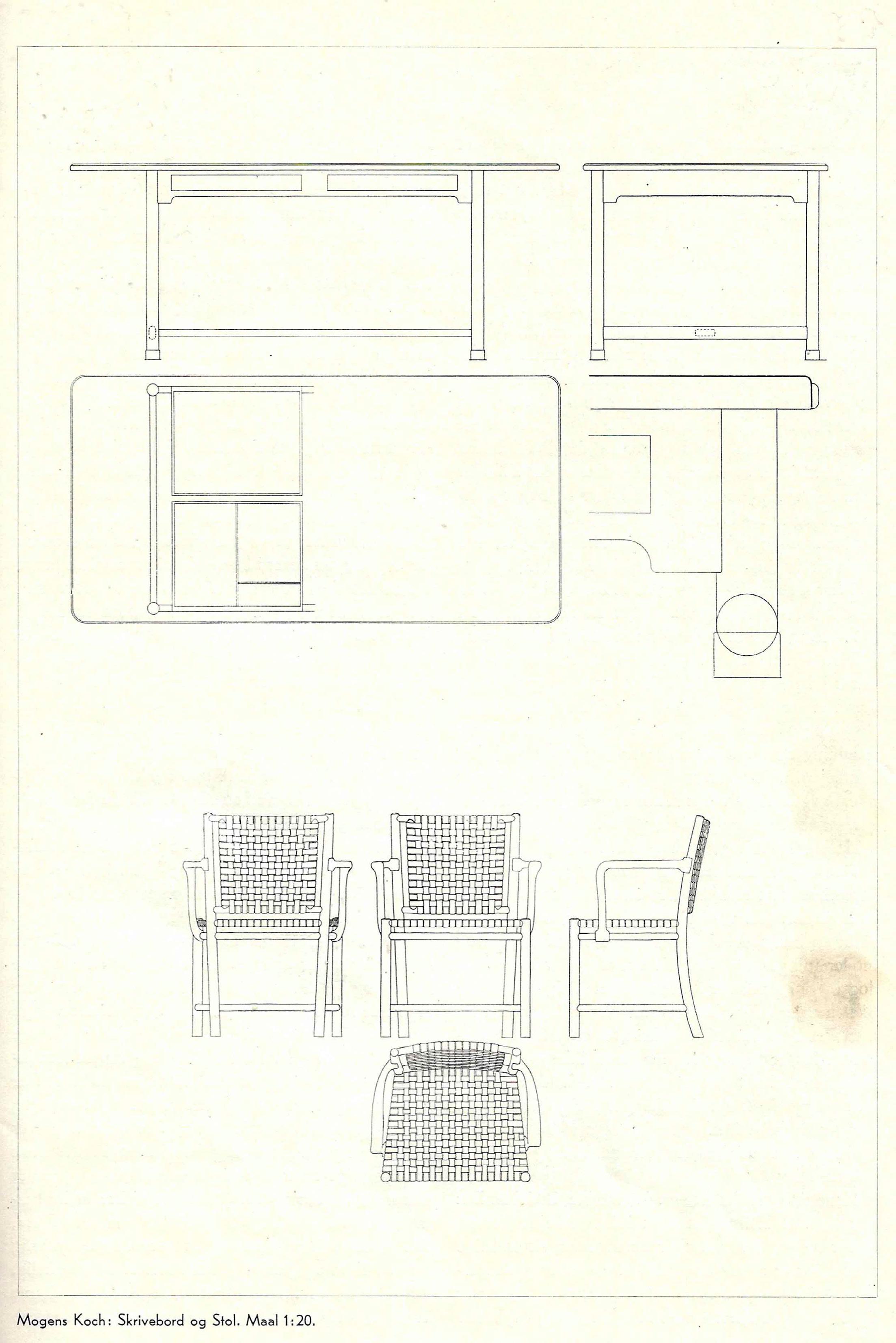 Mogens Koch (1898-1992) graduated from the School of Architecture at the Royal Danish Academy of Fine Arts in 1925, and from 1925-1930 he worked with the father of modern Danish furniture design Kaare Klint, who became a strong influence in his work. His profession as an architect bestowed him with a natural flair for creating furniture that perfectly adapts to its surrounding architecture, and like Klint, he had a pragmatic approach to design. Most of his pieces emerged out of a given task, hence his designs serve their functional purpose to perfection. The present desk clearly represents the core principles of the Danish functionalist tradition. It embodies respect for the functional demands of everyday furniture whilst expressing a beautiful simplicity in composition, construction and high-quality materials.