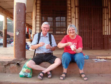 Efter en tur rundt på markedet i Zomba gør det godt med en is –turens eneste.