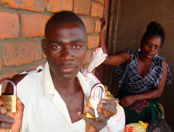 Gift på 14 år og Christopher på 15 år (billedet) har indtil denne dag skiftedes til at gå i skole, når de har haft mad i huset. Det var nødvendigt, at den ene af dem blev hjemme for at forhindre, at den smule, de havde, blev stjålet fra dem, mens de var væk. Christopher viser her de to hængelåse, Røde Kors er kommet med.
