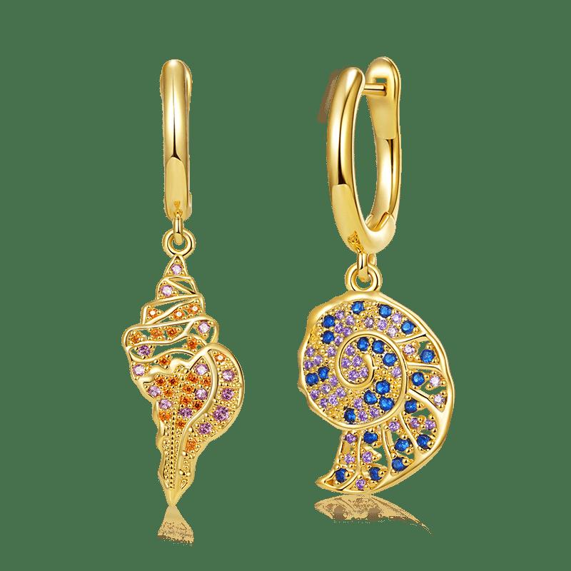 Pendientes Asimétricos Hipocampo y Pez con Plata de Ley bañada en Oro de 18K