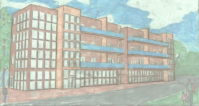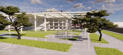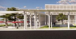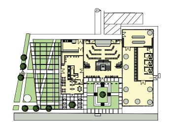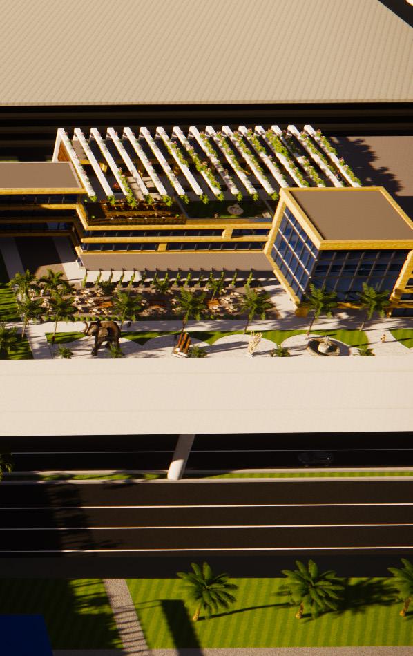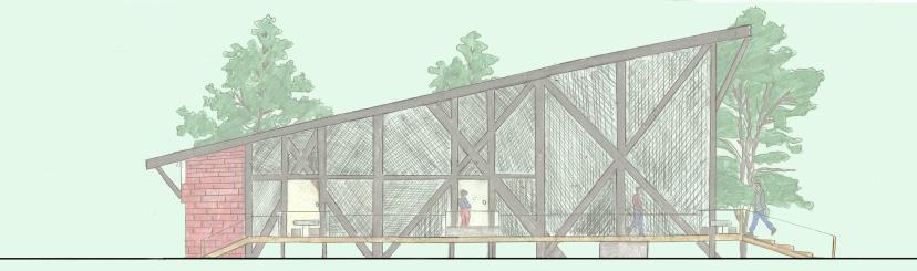 On the outside of the plans, I have a green roof with outside seating and a pergola that across the left side of the building it gave great shade and shadow.