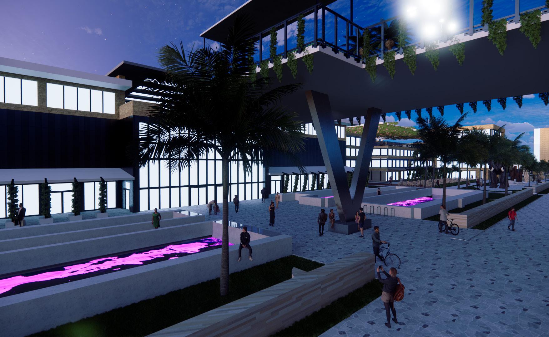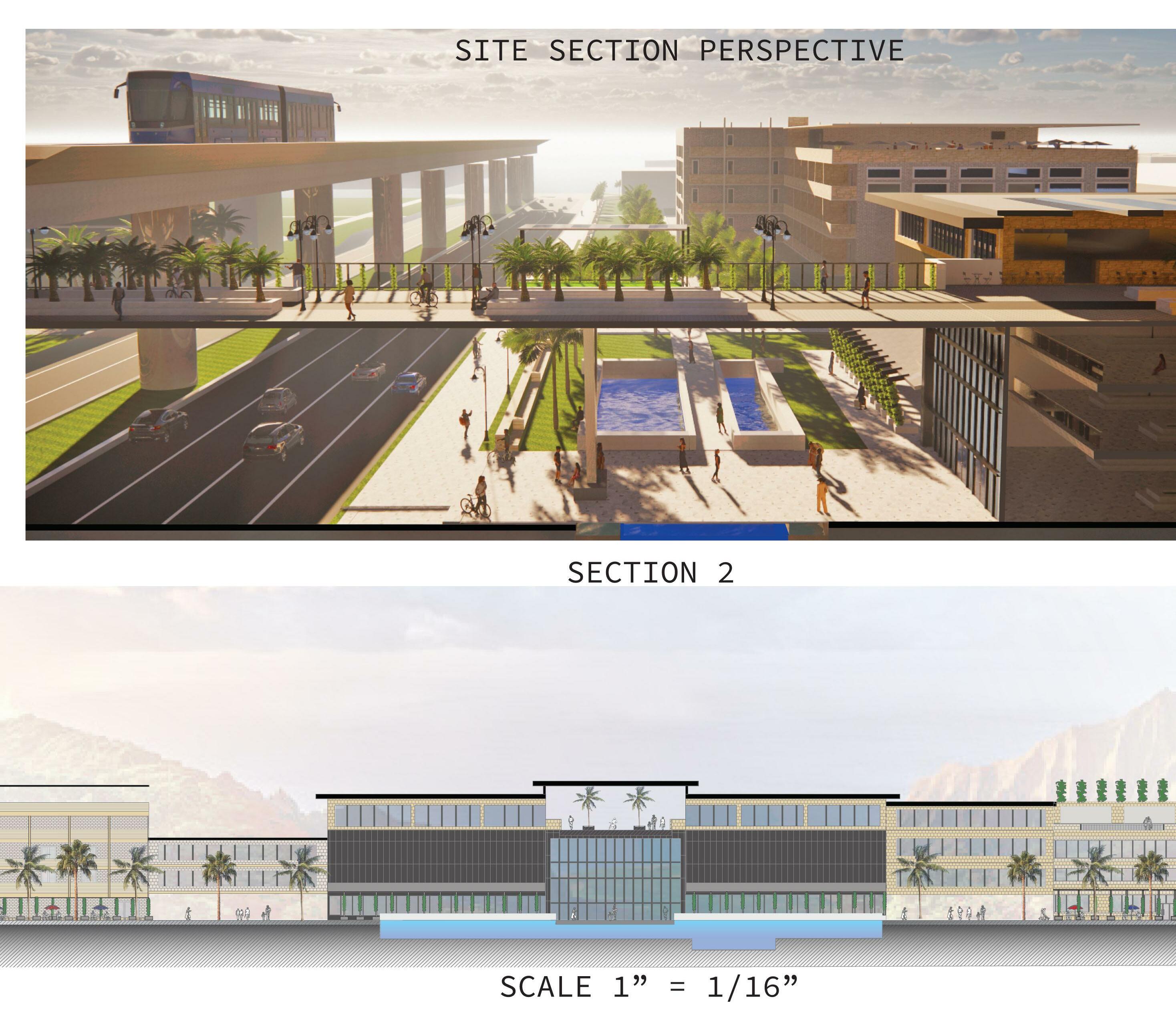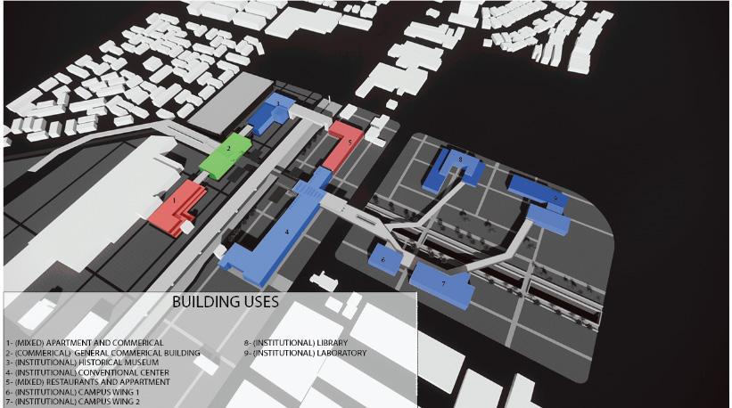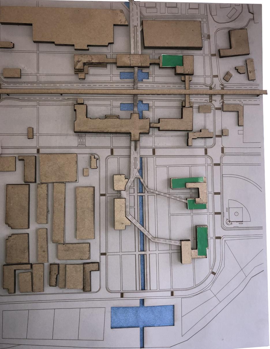 My Group and I wanted to capture the whole site showing different programs to identify our project we have the plaza in the middle with the bridge in the middle as the bridge continued it goes to the campus south down from the site. The bridge is meant for visitors and students to have an easy and enjoyable walk the bridge by having a path over the ground.