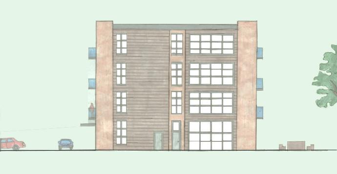 On the second-floor rise, the big bay window shows a great view of the existing buildings surrounding my site looking.