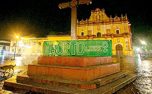 En el marco del 28 de sep tiembre “Día De Acción Global para la Despena lización del Aborto en América Latina y el Caribe”, La Red de Colectivas e Individua lidades Feministas de los Altos de Chiapas en coordinación con la Red de Justicia Reproductiva, Chiapas, colocaron un mensaje a la iglesia católica en San Cristóbal, en la que piden un aborto libre.