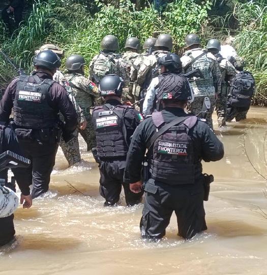 Con el objetivo de garantizar la seguridad en la zona fronteriza, la Secretaría de Seguridad del Pueblo (SSP), a través de la Guardia Estatal Preventiva y la Guardia Estatal Fronteriza, en coordinación con la Secretaría de la Defensa Nacional (Defensa), el Instituto Nacional de Migración (INM), la Fiscalía de Inmigrantes de la Fiscalía General del Estado (FGE), la Guardia Nacional (GN) y el Ejército de Guatemala, participaron en un Ejercicio Binacional de Seguridad Fronteriza, realizado sobre la línea divisoria entre México y Guatemala, en el municipio de Suchiate.