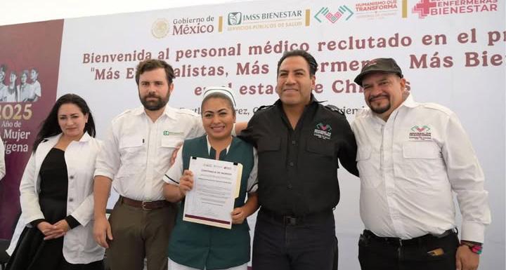 Por su parte, Alejandro Svarch Pérez informó que a nivel nacional se contrataron más de mil 300 especialistas y 2 mil 200 enfermeras y enfermeros, de los cuales se incorporan en Chiapas 145 enfermeras y enfermeros y 97 médicas y médicos especializados en áreas como anes-