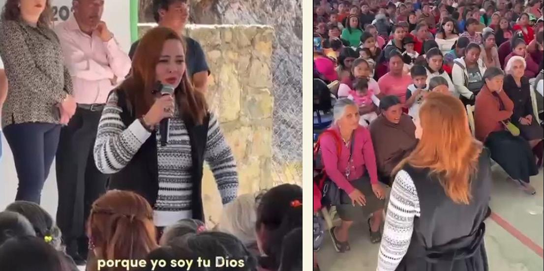 “YO SOY TU DIOS…, dice públicamente en su entrega de despensas, Fabiola Ricci Diestel en compañía de su mamá… NOTEN cómo MANIPULA las palabras que lleva escritas, el momento político, la concentración de mujeres, con la intención de que en ella vean a DIOS…