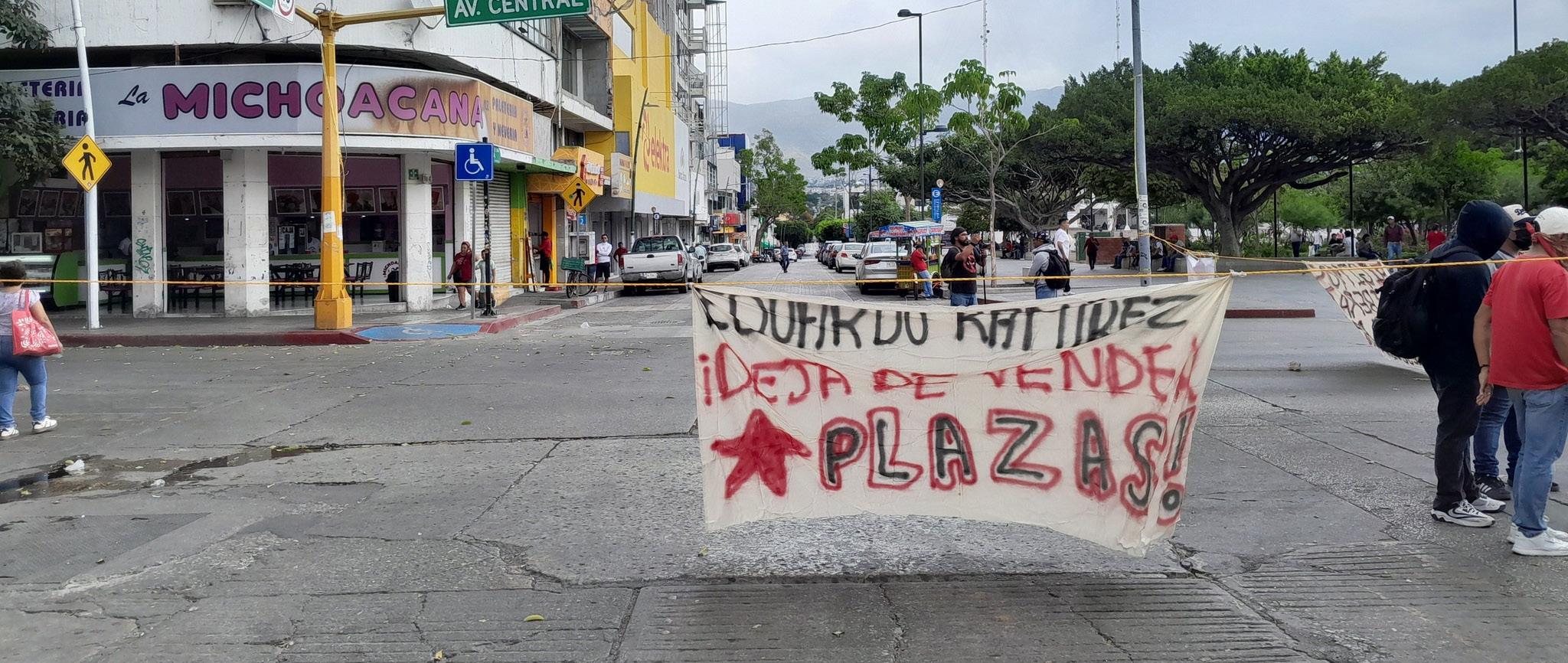 Egresados de diferentes normales del estado realizaron un bloqueo en el centro de Tuxtla Gutiérrez , en protesta por la falta de liberación de 150 plazas docentes prometidas por las autoridades educativas.