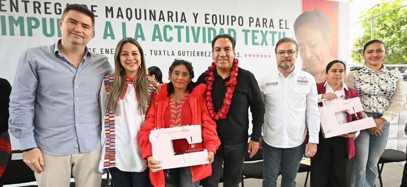 ñaló que la entrega de herramientas y maquinaria para la actividad textil impulsa el emprendimiento, mejora los ingresos familiares y contribuye a preservar la identidad cultural. Al mismo tiempo, reconoció el talento y la creatividad existentes en Chiapas, y valoró el modelo de desarrollo humanista del gobierno de la Nueva ERA, que transforma las políticas públicas en oportunidades reales.