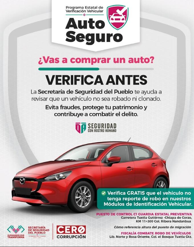 nes: desconfiar de precios excesivamente bajos; evitar transferir dinero para apartar algún vehículo, antes de haber inspeccionado la unidad en persona y confirmar la identidad del vendedor; consultar el estatus legal del vehículo en la plataforma oficial del Registro Público Vehicular (Repuve); y evitar encuentros en lugares solitarios o privados.
