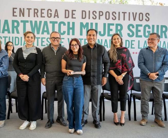 El gobernador Eduardo Ramírez Aguilar encabezó la entrega de dispositivos smartwatch del programa Mujer Segura: Presiona, Activa y Alerta a estudiantes de la Escuela de Medicina Veterinaria y Zootecnia de la Benemérita Universidad Autónoma de Chiapas (Unach), en Tuxtla Gutiérrez. En ese marco, destacó que una de las prioridades del gobierno de la Nueva ERA es garantizar el bienestar, la seguridad, la confianza y el derecho de las mujeres a una vida libre de violencia.