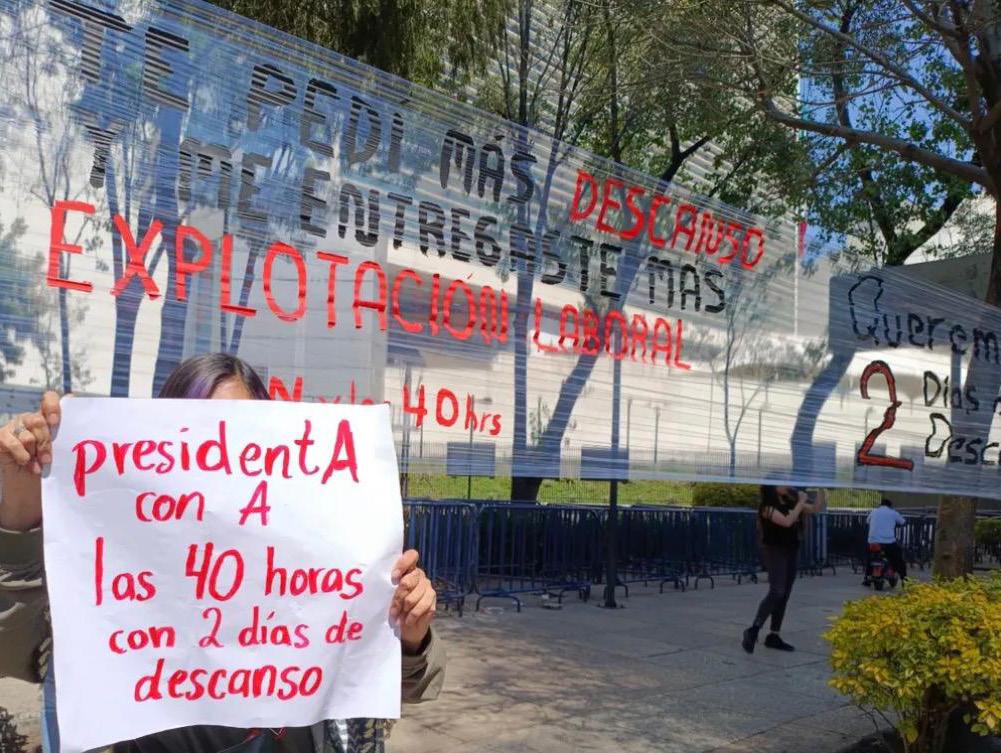 A la discusión se sumó la postura de las y los integrantes de la Mesa de Diálogo Sindical, Asociación General de las y los Trabajadores de la Unión Nacional de Trabajadores conformados por 28 organizaciones y colectivos quienes reconocieron la prohibición de disminuir salarios y prestaciones, así como prohibir a las personas menores de edad integrarse al trabajo extendido como parte de una demanda histórica del movimiento sindical. No obstante, se opusieron al diseño actual de la iniciativa de Sheinbaum, ya que no solo no garantizaba los dos días de descanso y desplazaba la implementación de la reducción laboral de forma inmediata, sino que impone un esquema de explotación y precarización laboral porque permite a las empresas extender las horas de trabajo en tiempos extras que se pagan el doble y no al triple como actualmente se hace.