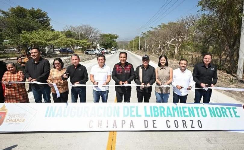 también puso en marcha infraestructura educativa en el Colegio Nacional de Educación Profesional Técnica (Conalep) Plantel 22, donde se destinaron 7.2 millones de pesos en beneficio de 934 estudiantes. De igual forma, inauguró obras en la Escuela Primaria José María Morelos y Pavón, con una inversión de 5.3 millones de pesos que favorece a 312 alumnas y alumnos. En ese marco, reiteró que continuará fortaleciendo acciones en favor del sector educativo y de las niñas, niños y jóvenes de Chiapas. El director general de la Comisión Estatal de Caminos, Rafael Ruiz Morales, señaló que la pavimentación de cerca de un kilómetro del Libramiento Norte representa un acto de justicia social para el pueblo de Chiapa de Corzo y comunidades aledañas, además de reflejar el humanismo transformador de la Nueva ERA de Chiapas. Precisó que la obra cuenta con una estructura metálica adecuada para el tránsito de vehículos pesados, por lo que llamó a la población a contribuir en su conservación. “En todo el estado hay un reto grande