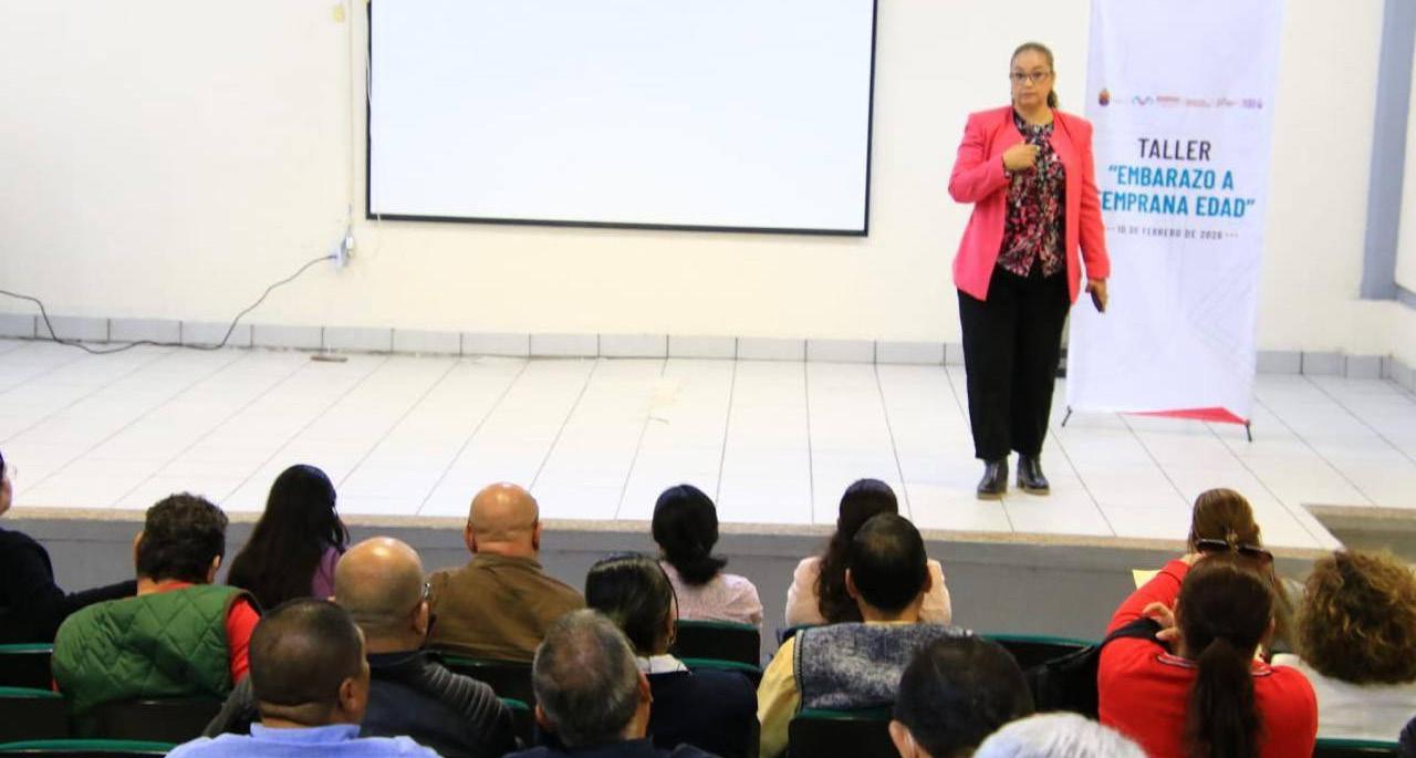 dar orientación adecuada, empática y responsable a las y los estudiantes. El taller fue impartido por Verónica Duarte Villafaña, enlace de la Unidad de Desarrollo de Capacidades de la Subdirección de Salud de la Mujer de la Secretaría de Salud, quien abordó temas clave como la definición y clasificación del embarazo a temprana edad —que puede presentarse en la adolescencia temprana (10 a 14 años), media (15 a 17 años) y tardía (18 a 19 años)—, así como los riesgos físicos, emocionales y sociales asociados, cuando el cuerpo y la mente aún no están preparados. También se reflexionó sobre las causas, entre ellas la violencia sexual, los matrimonios o relaciones forzadas y la limitada disponibilidad de servicios de orientación en salud sexual, así como las consecuencias económicas, sociales y educativas, que