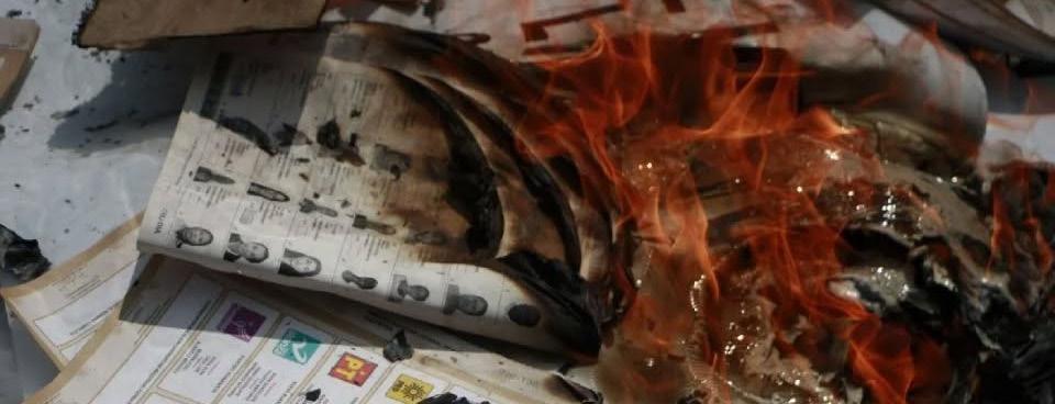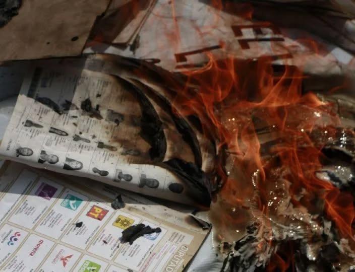 documentación electoral. Posteriormente, los señalados prendieron fuego a las boletas, impidiendo que se finalizara el conteo oficial necesario para validar el proceso democrático en esa demarcación.
