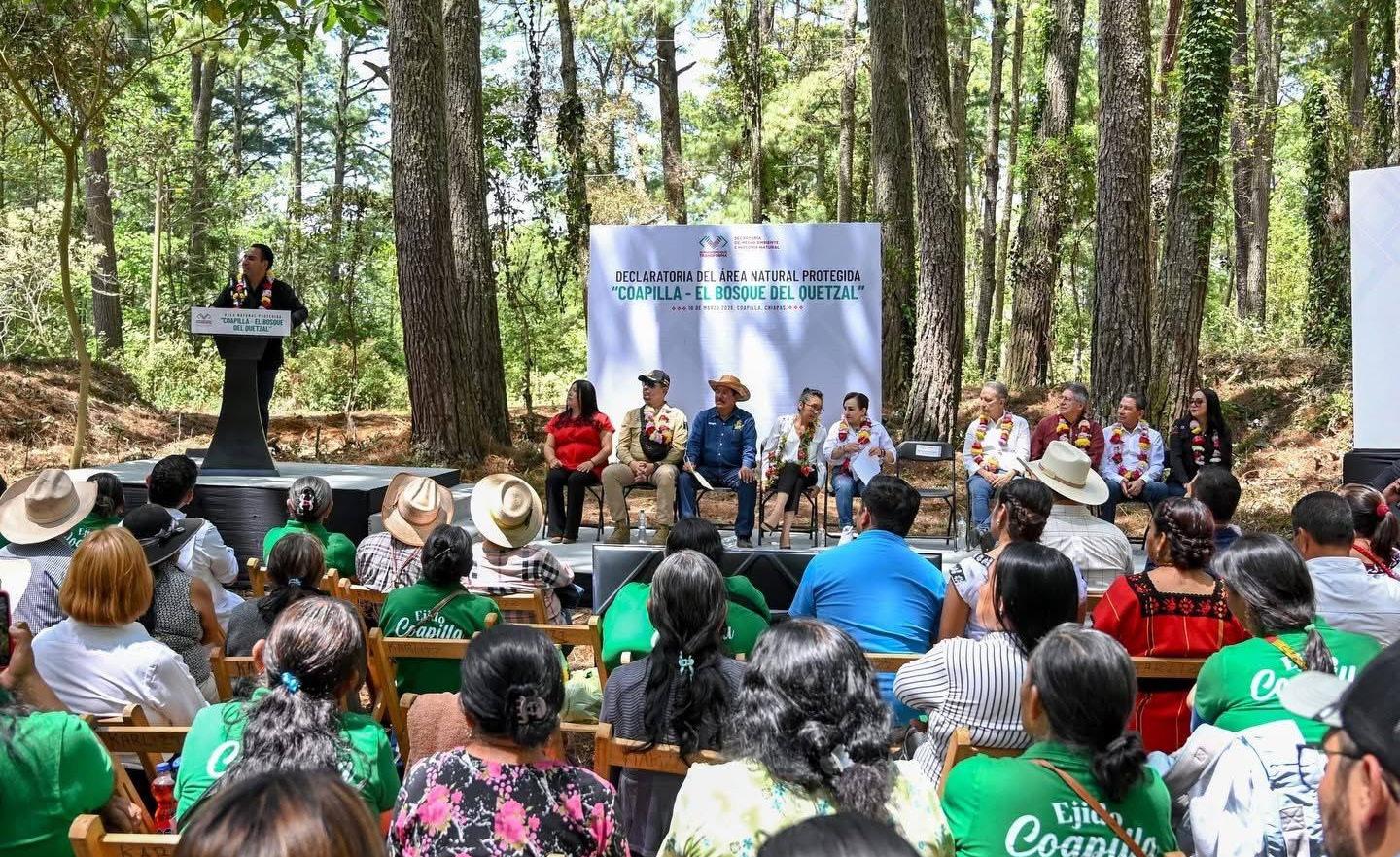 En el municipio de Coapilla, el gobernador Eduardo Ramírez Aguilar encabezó la declaratoria de Área Natural Protegida con categoría de Zona Sujeta a Conservación Ecológica para la ecorregión Coapilla: El Bosque del Quetzal, con una superficie total de 959.26 hectáreas. Este territorio representa una ruta clave para la movilidad de una amplia diversidad de aves y otras especies.