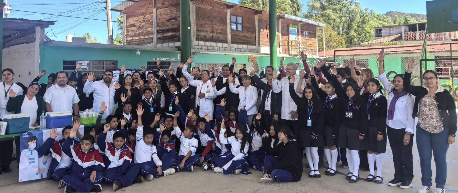 dama, Santiago El Pinar, Oxchuc y San Juan Cancúc, con el objetivo de acercar los servicios de vacunación directamente a las escuelas.
