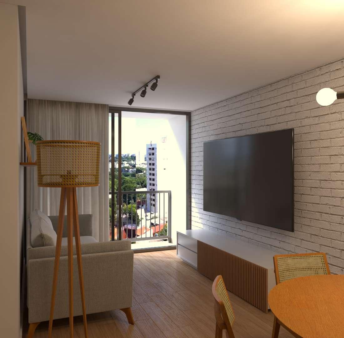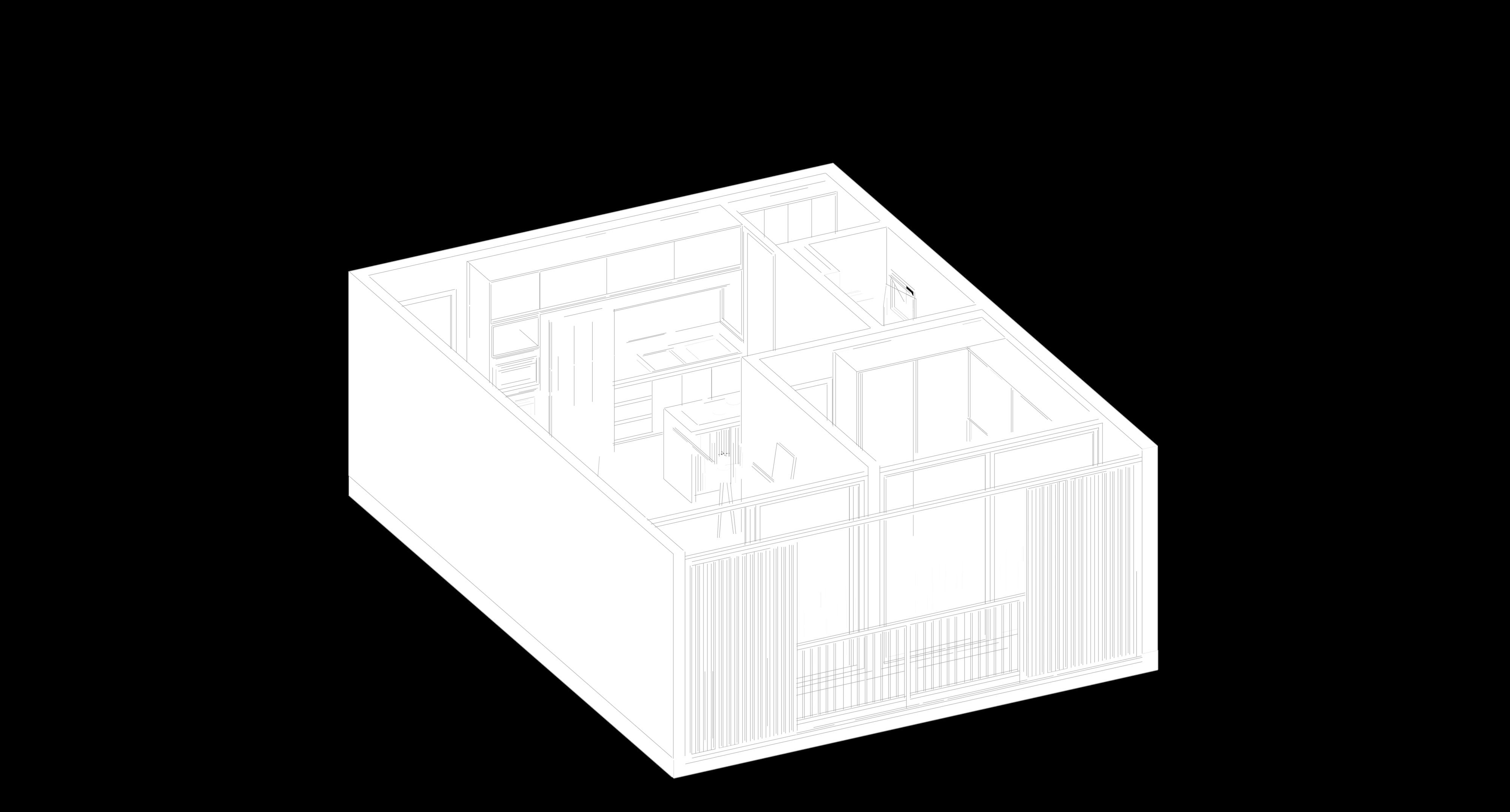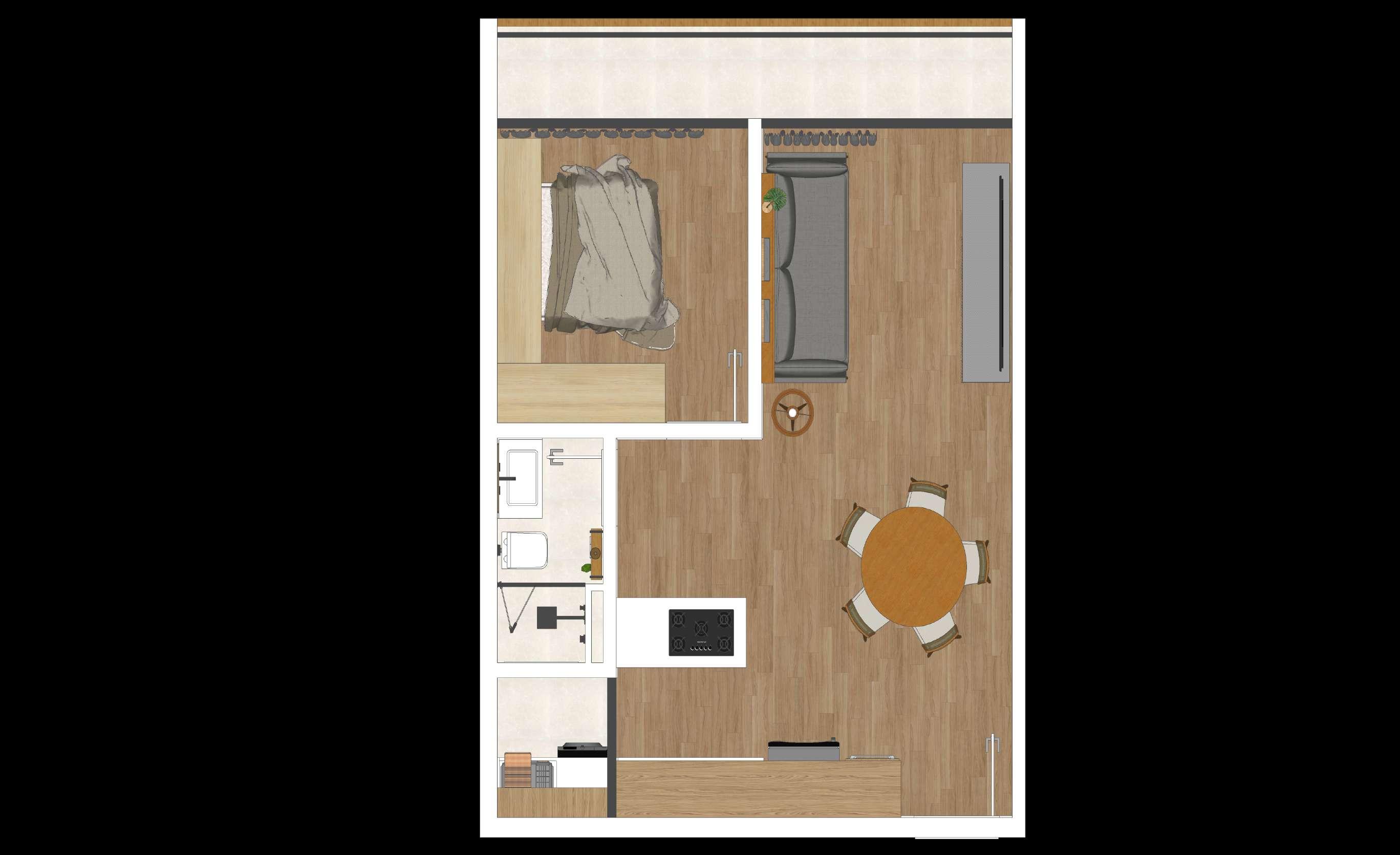 O projeto apresentado a seguir diz respeito à modelagem e renderização de uma das tipologias de apartamento desenvolvidas no projeto de habitação multifamiliar apresentado anteriormente. Desenvolvido individualmente em 2023 e fora do âmbito acadêmico, o trabalho surgiu como uma forma de colocar em prática e aprimorar habilidades em so wares que são corriqueiros no exercício da arquitetura, fazendo uso de um trabalho próprio. Para a modelagem 3D foi utilizado o SketchUp, onde foi feita a modelagem do apartamento, bem como a aplicação de texturas, posicionamento de blocos, entre outros. Quanto à renderização, o so ware utilizado foi o V-Ray, onde foram configurados os materiais aplicados no modelo, a iluminação e as cenas.
