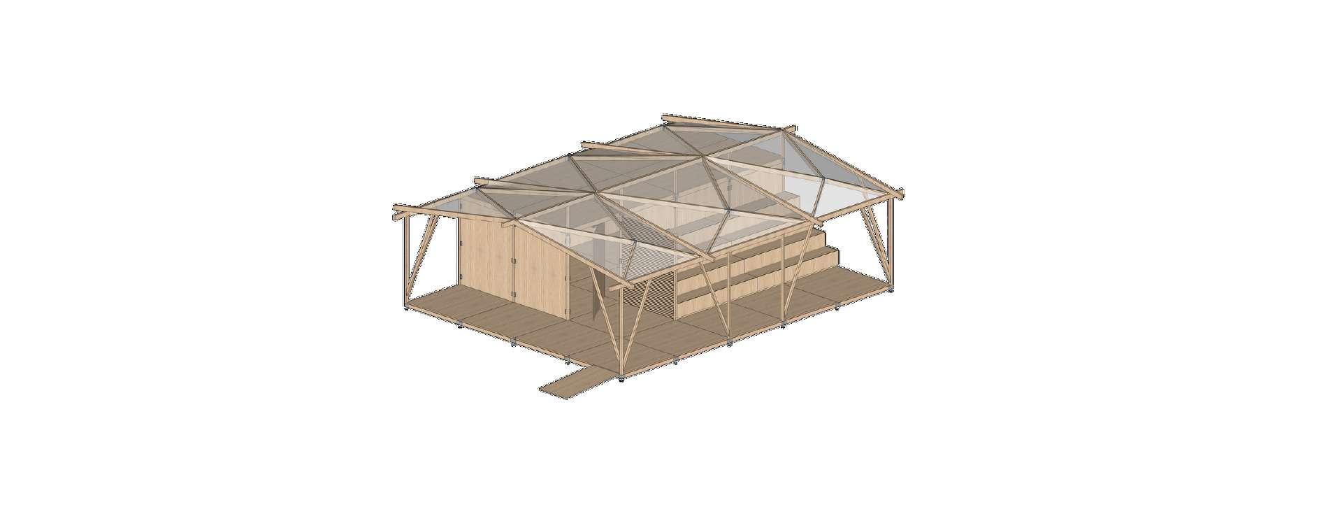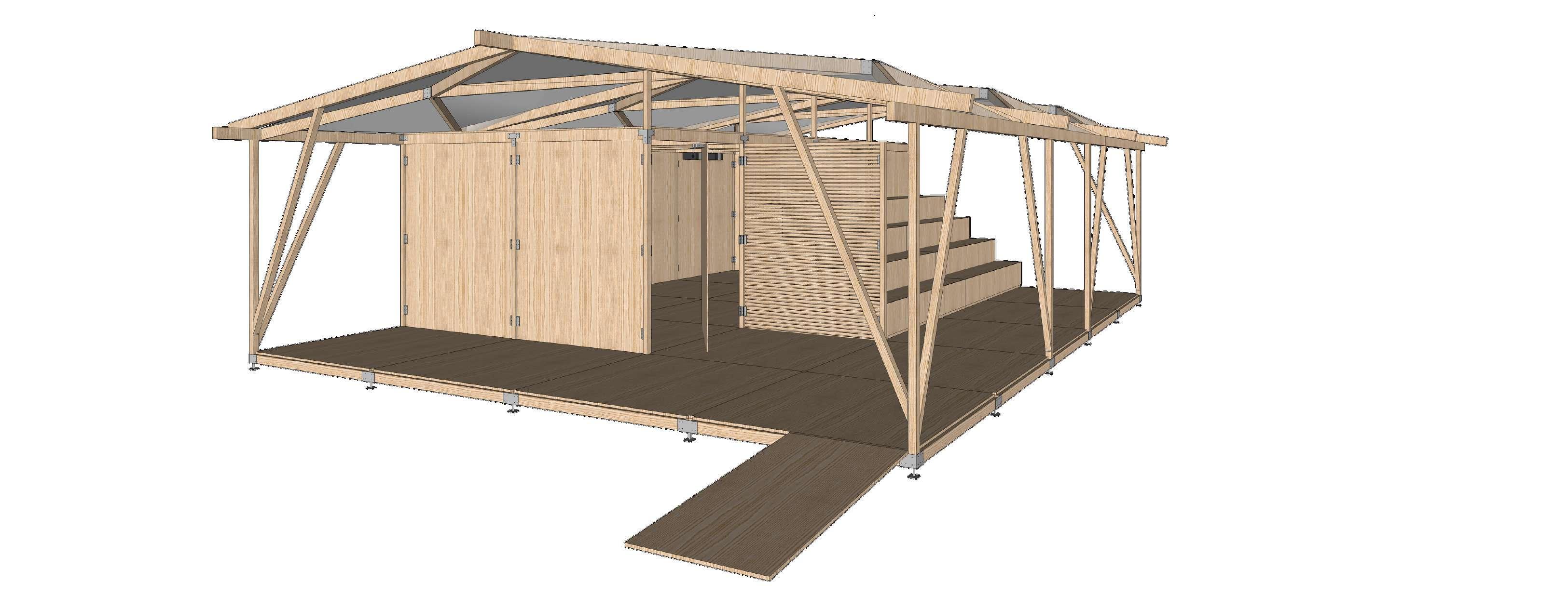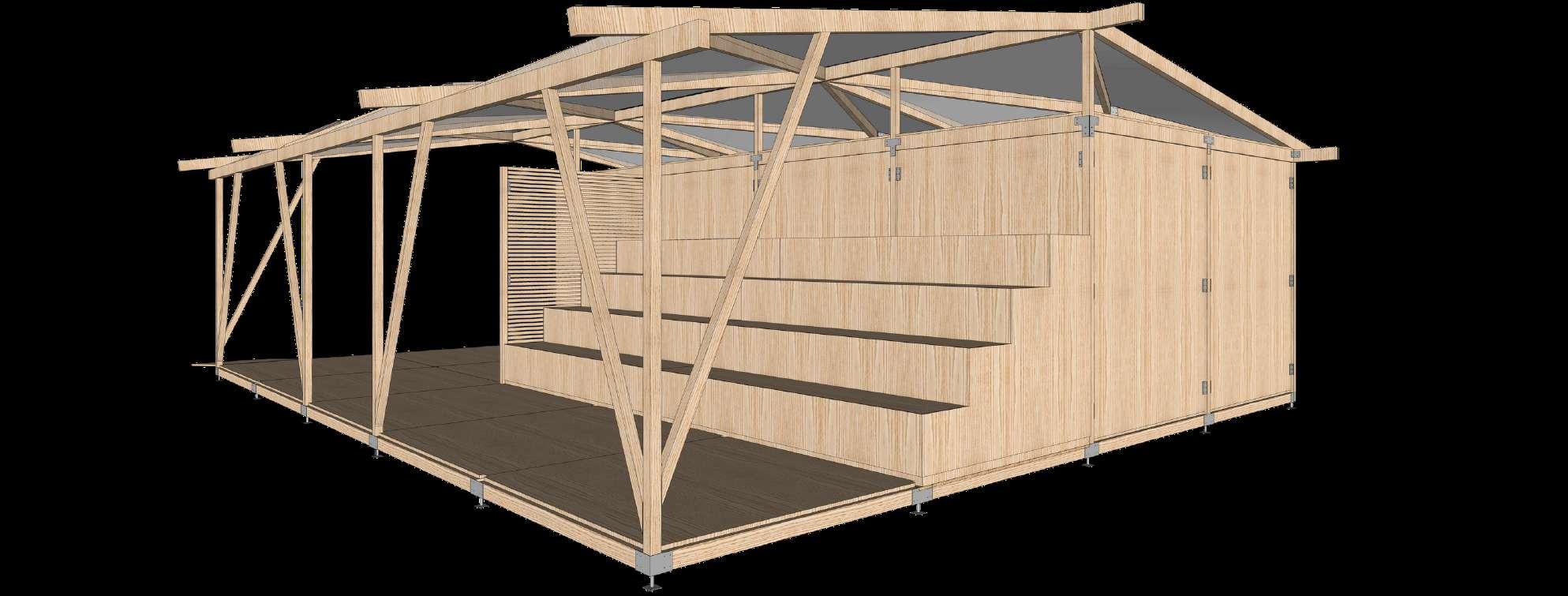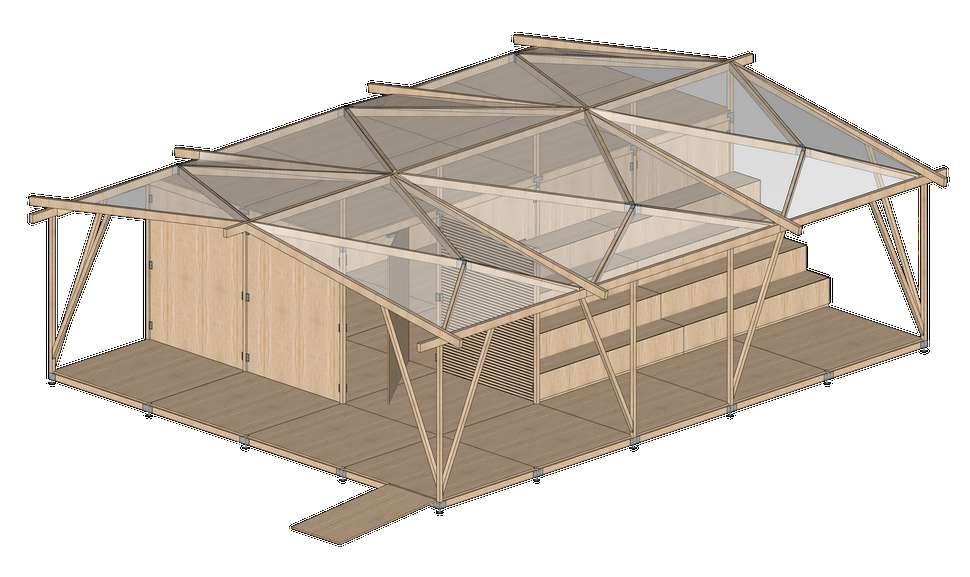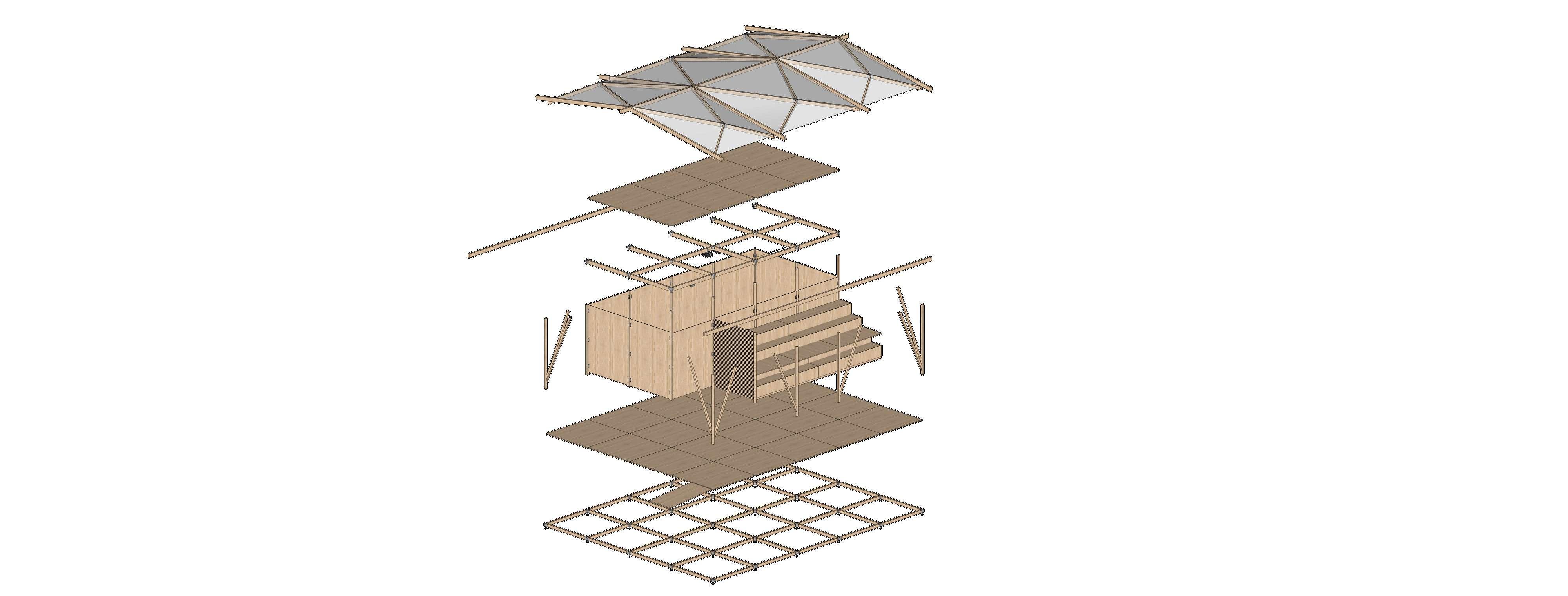 A partir das possibilidades proporcionadas pelos métodos industriais, o Núcleo Educacional ganha vida através de elementos pré-concebidos que materializam o projeto à medida que são encaixados entre si. Em virtude do caráter flexível da estrutura, isto é, a possibilidade de ser facilmente montada e desmontada, o projeto assume a condição de itinerância e, apesar do enfoque no PEJ, o Núcleo Educacional pode ser transportado e instalado em outros lugares onde exista a necessidade do programa programa compreendido por ele.