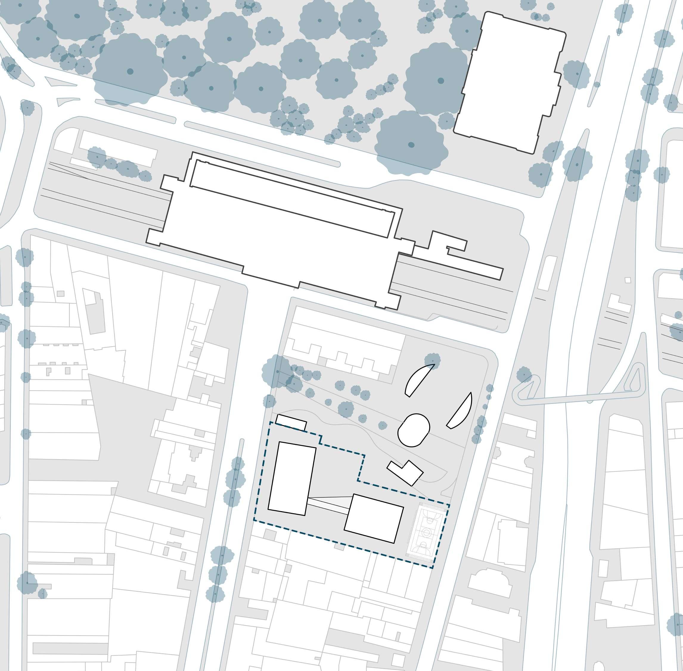 Dois blocos em meio ao bairro da Luz, em meio a uma infraestrutura de transportes, cultural e educacional de porte significativo. O presente projeto, desenvolvido em dupla na disciplina AUP0160 - Projeto 3, toma como partido essencial justamente a sua implantação. Situado ao lado do metrô Luz, e próximo à equipamentos como o Museu da Língua Portuguesa, Pinacoteca e Parque Jardim da Luz, enxerga-se o quão oportuno é a idealização de uma rotina escolar neste local, uma vez que o seu entorno além de ser um convite à práticas pedagógicas e aprendizado, permite a construção de uma didática que extrapola os limites da própria escola e se apropria das possibilidades que o seu entorno oferece. Em convergência à concentração de atividades culturais e educacionais existentes ali, estabeleceu-se o princípio de que o projeto não apenas iria usufruir das potencialidades da região, mas que igualmente faria parte desse polo. Desse modo, o projeto se conforma a partir de dois blocos que se distinguem pelo seu programa, isto é, o primeiro bloco concentra espaços potenciais para que a escola eventualmente volte-se para o público, enquanto o segundo bloco concentra espaços que dizem respeito às práticas de ensino cotidianas de uma escola.
