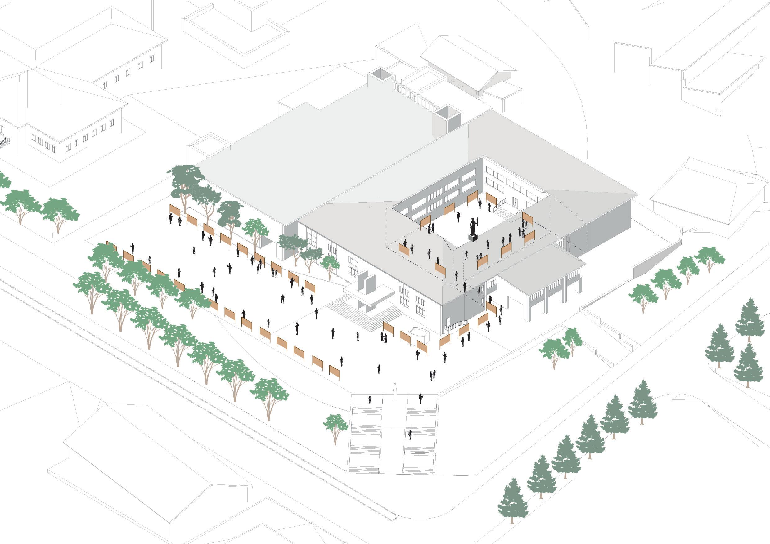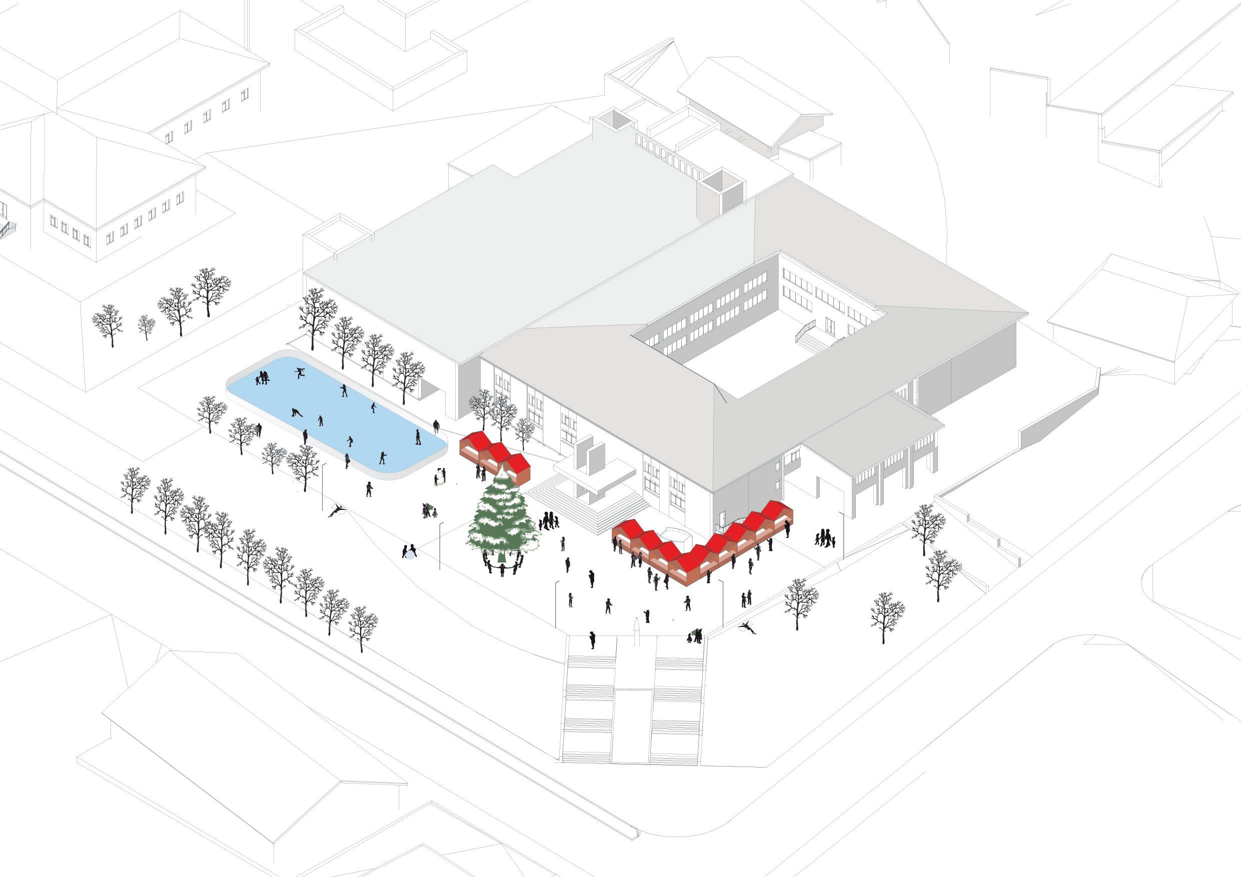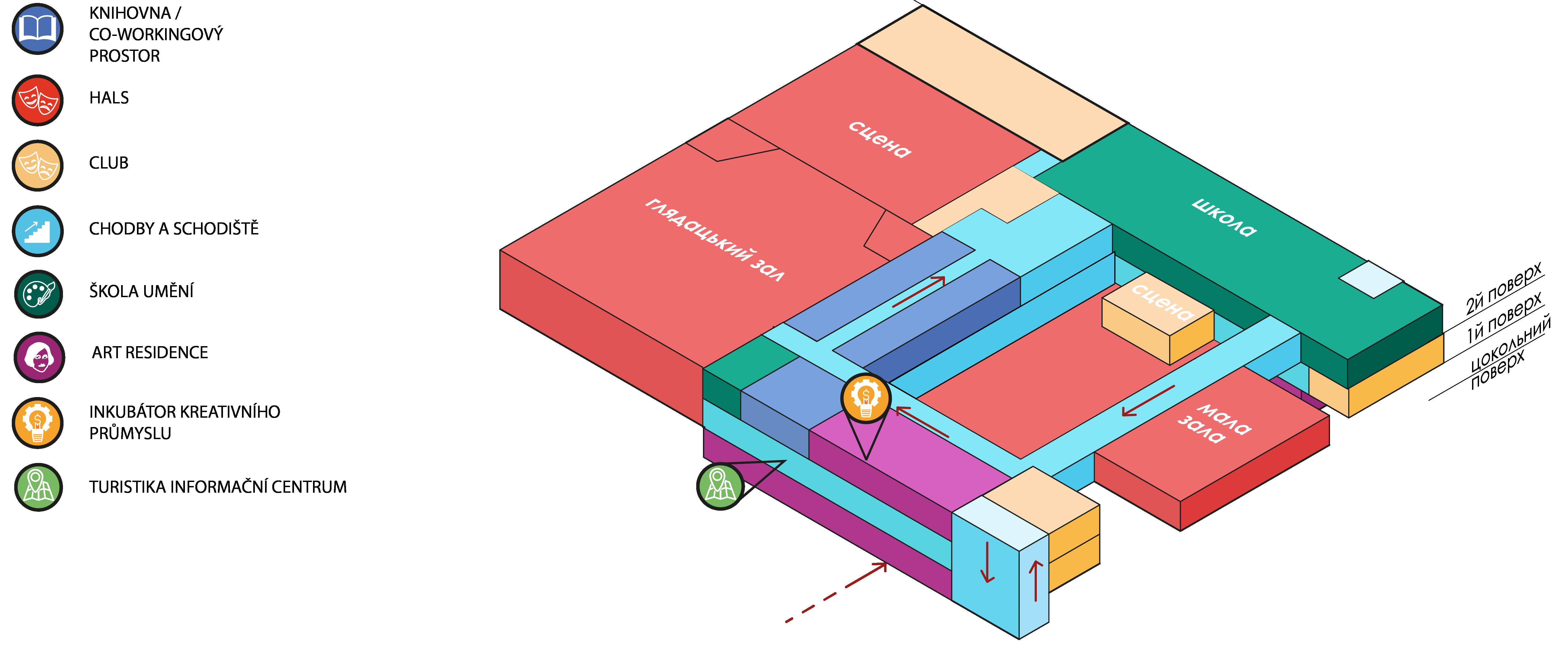 Přeměna kulturního domu zahrnuje úpravu suterénu pro různé funkce, pouliční scény pro filmové a divadelní festivaly, co-workingový prostor pro matky a dětskou vědeckou laboratoř, terasu a solární elektrárnu na střeše. Centrum kulturních služeb v Velykí