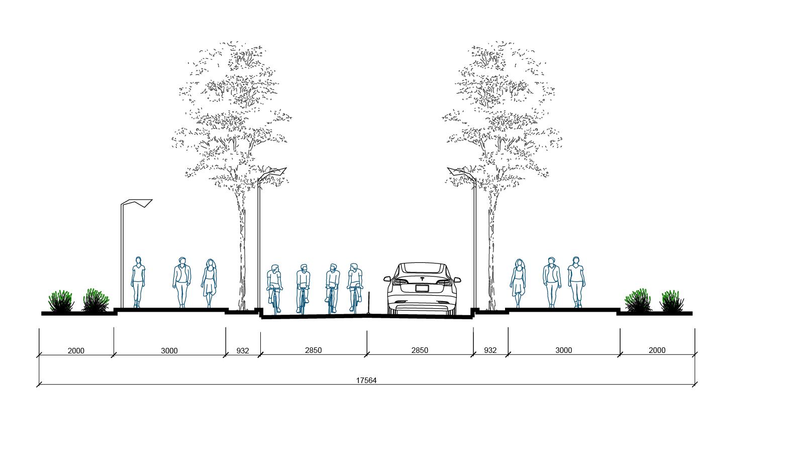 Polní cesta Vyhlídková terasa Stromořadí Pergola Cyklistická stezka