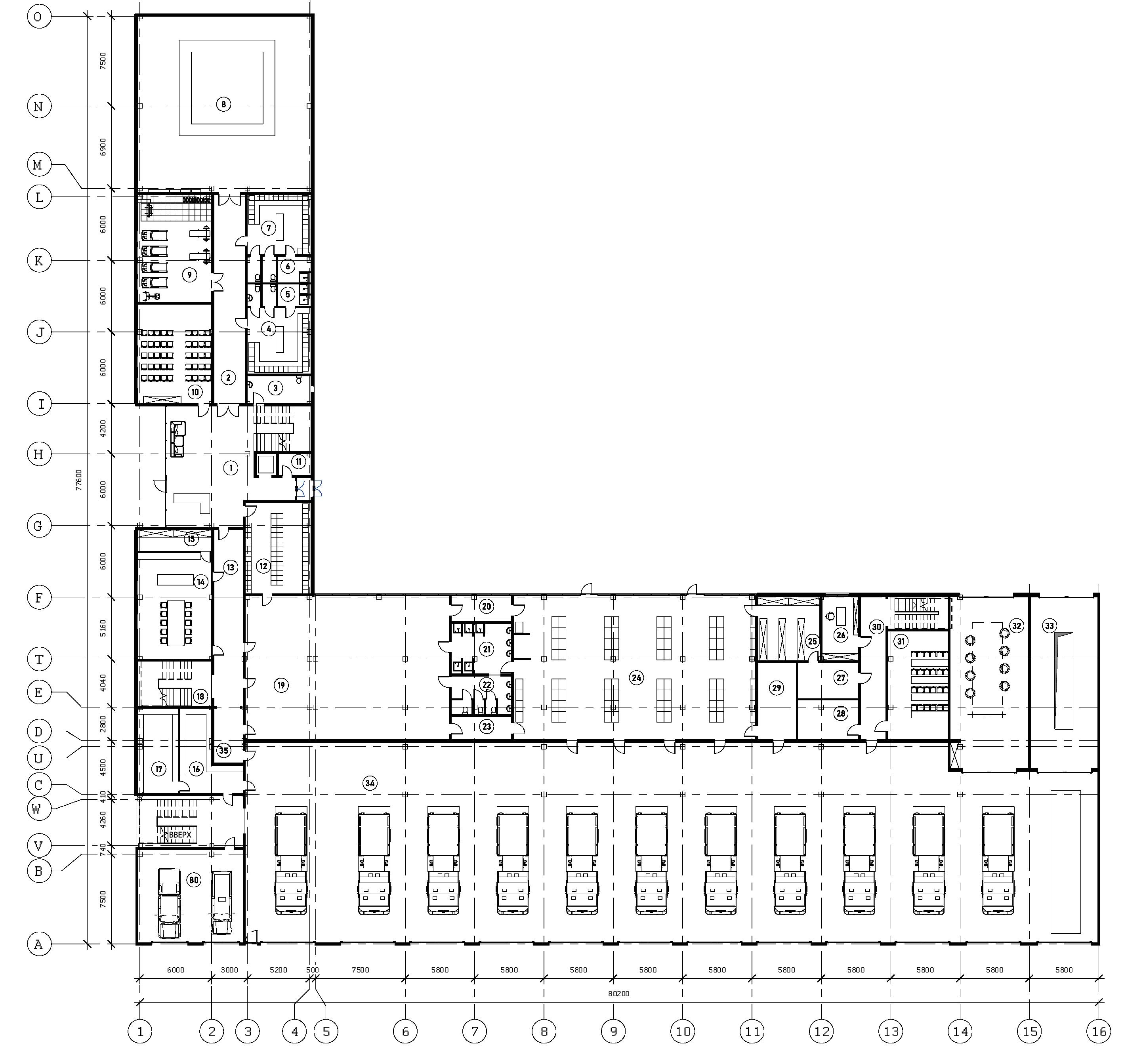 1. Hala 2. Chodba 3. Koupelna pro 4. Šatna 5. Koupelna a sprchový kout 6. Koupelna a sprchový kout 7. Šatna 8. Tělocvična 9. Tělocvična 10 Pokoj pro obyvatelstvo 11 Spíž 12 Šatní skříň 13 Chodba 14 Jídelna 15 Spíž 16 Složení požárních hadic 17 Mytí požárních hadic 19 Strážní místnost 20 Brána 100 m² 46 m² 12 m² 29 m² 10 m² 11 m² 27 m² 211 m² 55 m2 51 m² 5 m² 41 m2 71 m2 54 m2 11 m² 25 m² 24 m² 202 m² 10 m² 21 Sprchový kout 22 Toaleta 23 Brána 24 Pokojspeciální oděvy 25 Složení osobních ochranných prostředků 26 Kancelář magistra 27 Kompresor 28 Složení 29 Prádelna 30 Pokoj 31 Pokoj bezpečnosti provozu 32 Myčka aut 33 ST 34 Garáž 20 m² 16 m² 9 m² 238 m² 28 m² 16 m² 15 m² 16 m² 21 m² 39 m2 45 m² 93 m2 80 m² 1162 m2