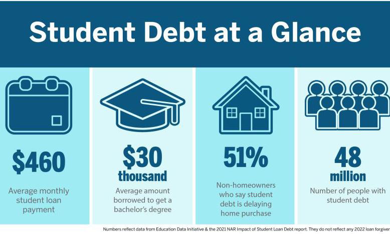 Ga. “We get people in their 40s and 50s who are still paying off student loans. They went back for a master’s degree, or they are parents who cosigned their children’s student loans.” President Biden provided some relief (not reflected in the previous numbers) when he announced in late August 2022 that he would cancel $10,000 in student loan debt for those earning less than $125,000 per year. The relief includes an additional $10,000 for those who received Pell grants for lowincome students.