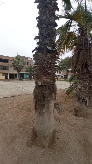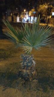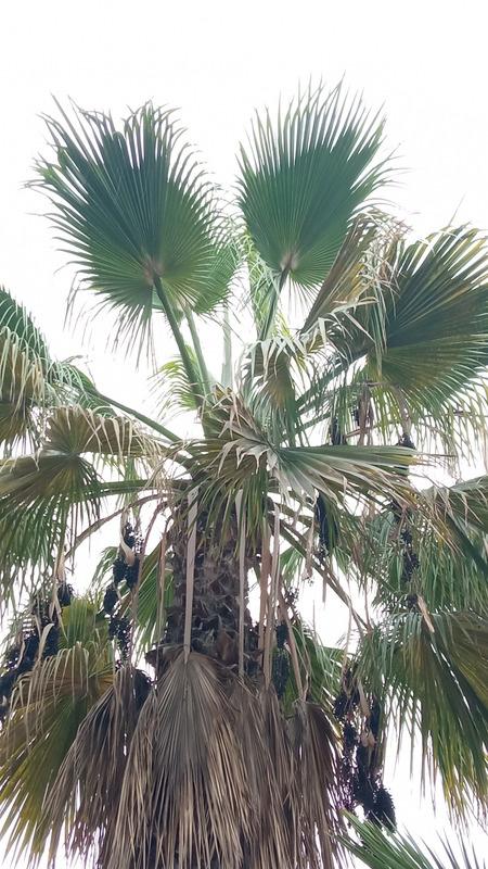 Especie: Washingtonia robusta. Nombre común: “palma de abanico”. Origen: Baja California. Es una palmera de crecimiento veloz (1m por año). Alcanza los 20 m de altura, su corteza es de color pardo grisáceo, sus hojas pueden alcanzar hasta dos metros de diámetro, de color verde brillante. Necesita pleno sol y es muy resistente a la sequía y la salinidad. Se trata de una planta polémica que se ha sembrado en Lima en grandes cantidades, básicamente por su fácil reproducción. Su mantenimiento es costoso ya que no cambia de hojas naturalmente y es necesario podar el tallo.