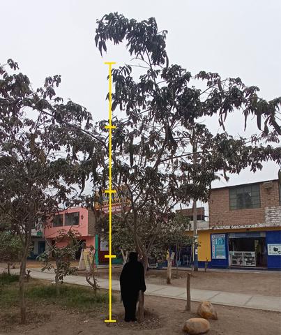 Según la escala humana la altura aproximada del árbol de pacay es de 6m.