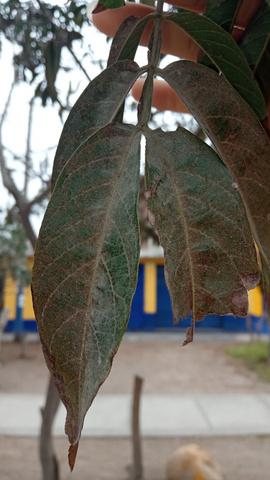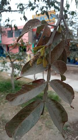 Las hojas en el género Inga son pinnadas paripinnadas en el caso de nuestra muestras es una hoja compuesta con raquis alado