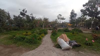 En el parque y alrededores no hay tachos de basuras establecidos causando puntos de desmonte dando mal aspecto, al igual el parque esta descuidado teniendo muchas áreas secas, las veredas estan en mal estado y hay tramos faltantes por construir.
