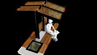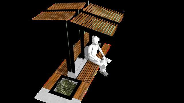 Laspérgolasseusaráncomocomplementoparaeláreadetransición,apoyando endarsombraalospeatonesubicadosenlasmesasempotradas,elmaterialque seusaráparalapérgolaserálamadera.