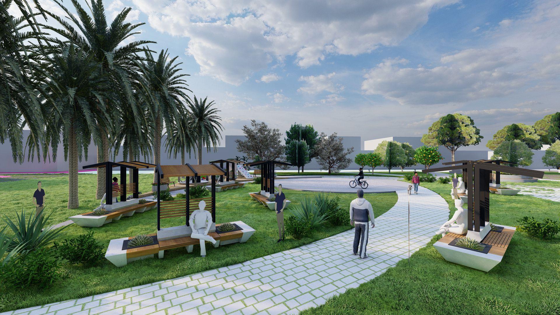 Asientodebasedecementoyrevestimientodemaderaquemejoraríalaforma visualdelparqueyaquesevinculaalasáreasseleccionadayconservarlo mobiliariospúblicos