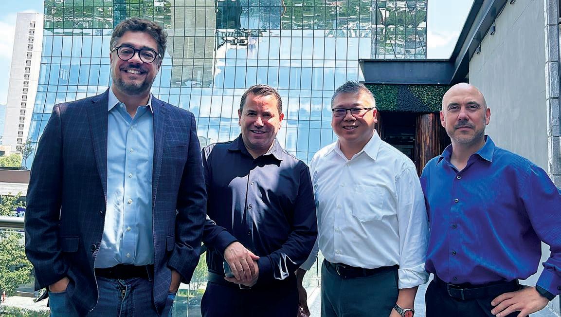 From left: Otavio Freire (MBA ’05), CEO and co-founder of Caju.AI; Edwin Solis, president of Caribbean and Latin America for Innova Solutions; Jim Ting, COO and co-founder of Caju.AI; and Roberto Sada Kane (MBA ’05), head of global business development for Caju.AI.