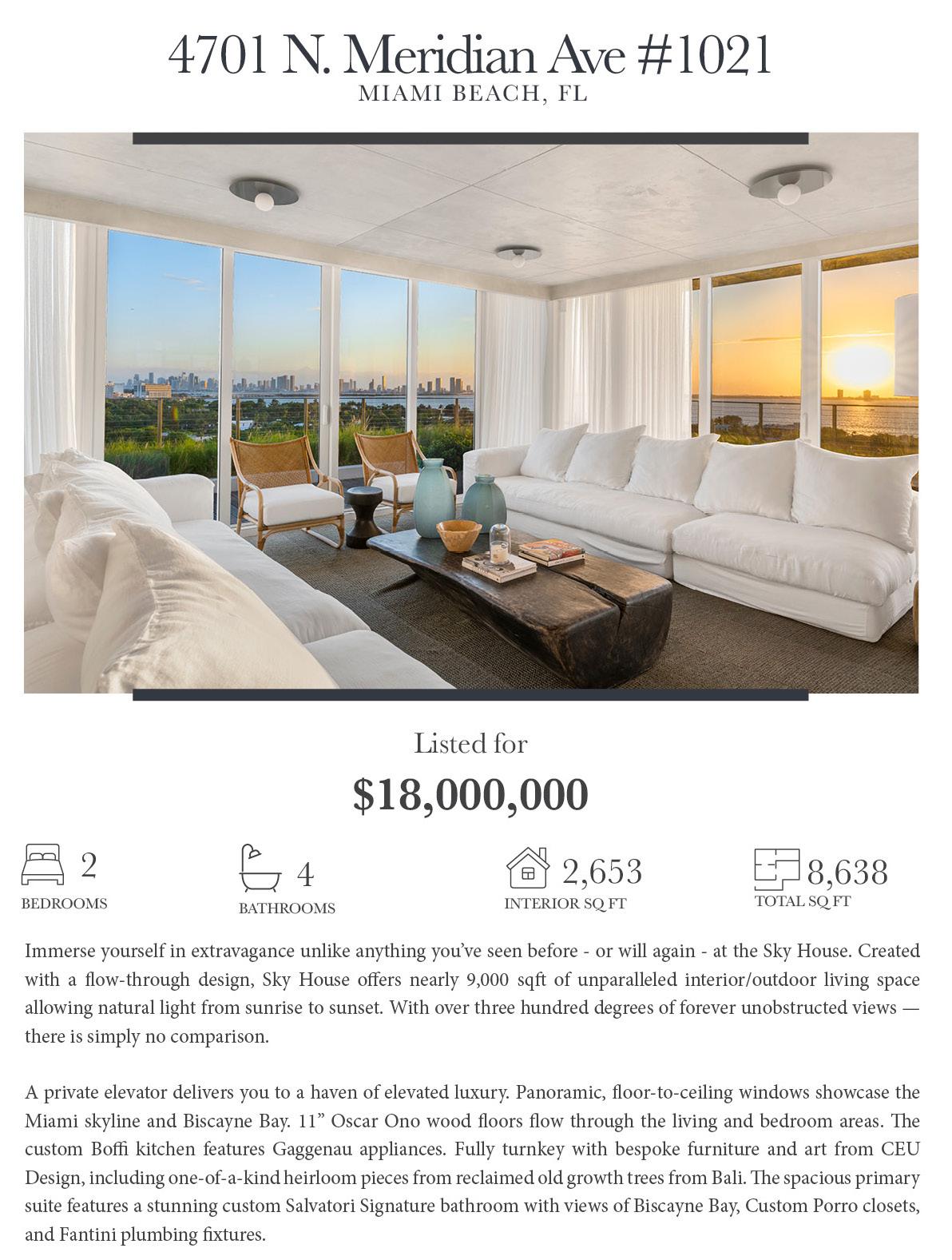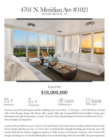 The Bristol MIAMI BEACH The Ritz-Carlton Residences #107 MIAMI BEACH The Ritz-Carlton Residences PH-21-24 MIAMI BEACH The Ritz-Carlton Residences PH-1 MIAMI BEACH $15,000,000 The Miami Beach EDITION #1402 MIAMI BEACH Surf Club Four Season S-405 MIAMI BEACH