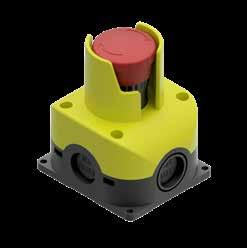 The new series of SL enclosures was specifically designed for applications in lifts. It now comes with a new emergency stop device with integrated protection. This device is equip ped with our mushroom-like pushbutton type ECX 4580 (with rotary release) certified for emergency stop according to IEC 60947- 5-5 and EN ISO 13850 standards. Our E-STOP SL-series device can also be supplied with various contact configurations to give our customers a ready-to-use solution for any application. The integrated protection also allows for foot-controlled activation and protecting the pushbutton from damage caused by it being trampled upon.
