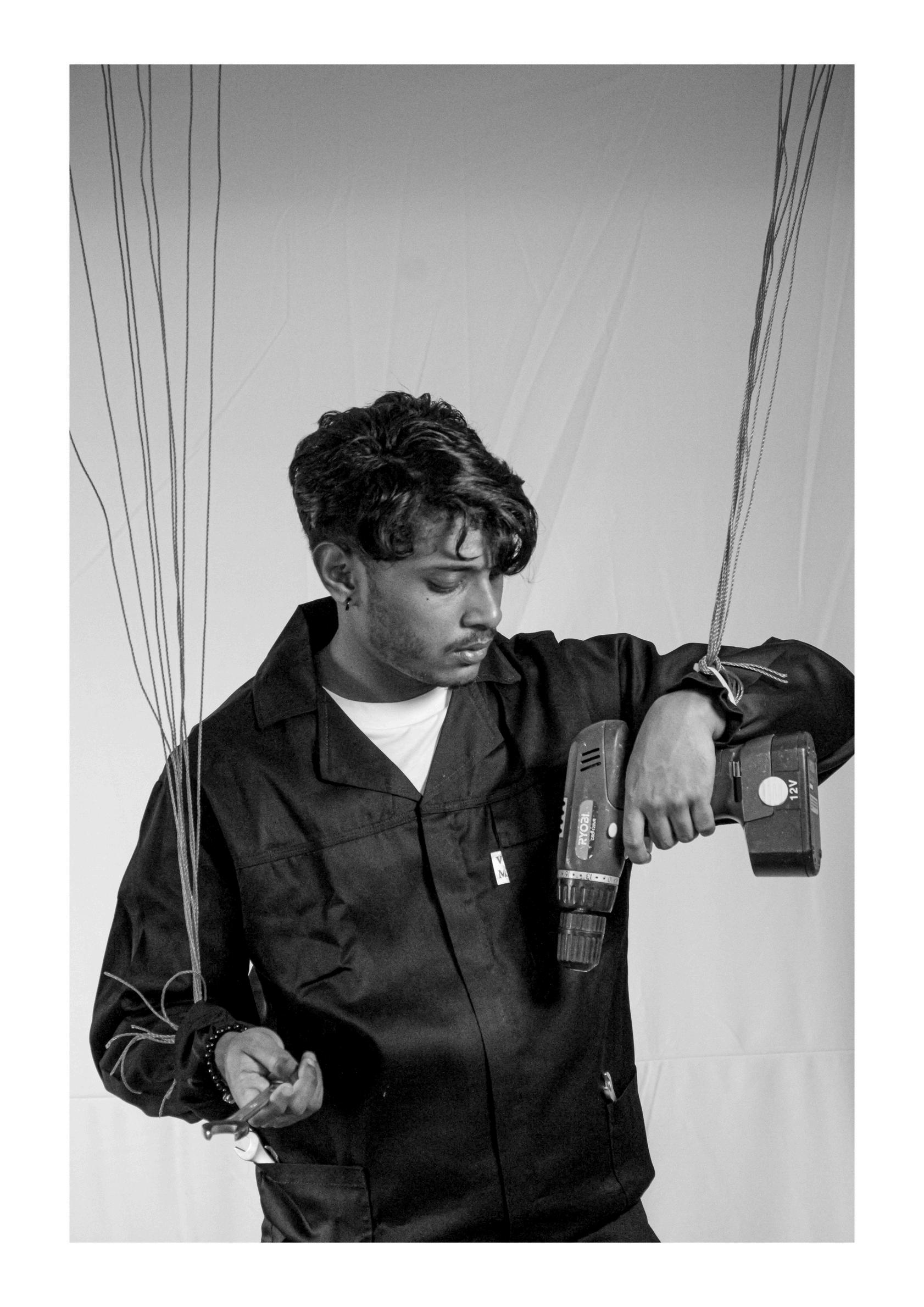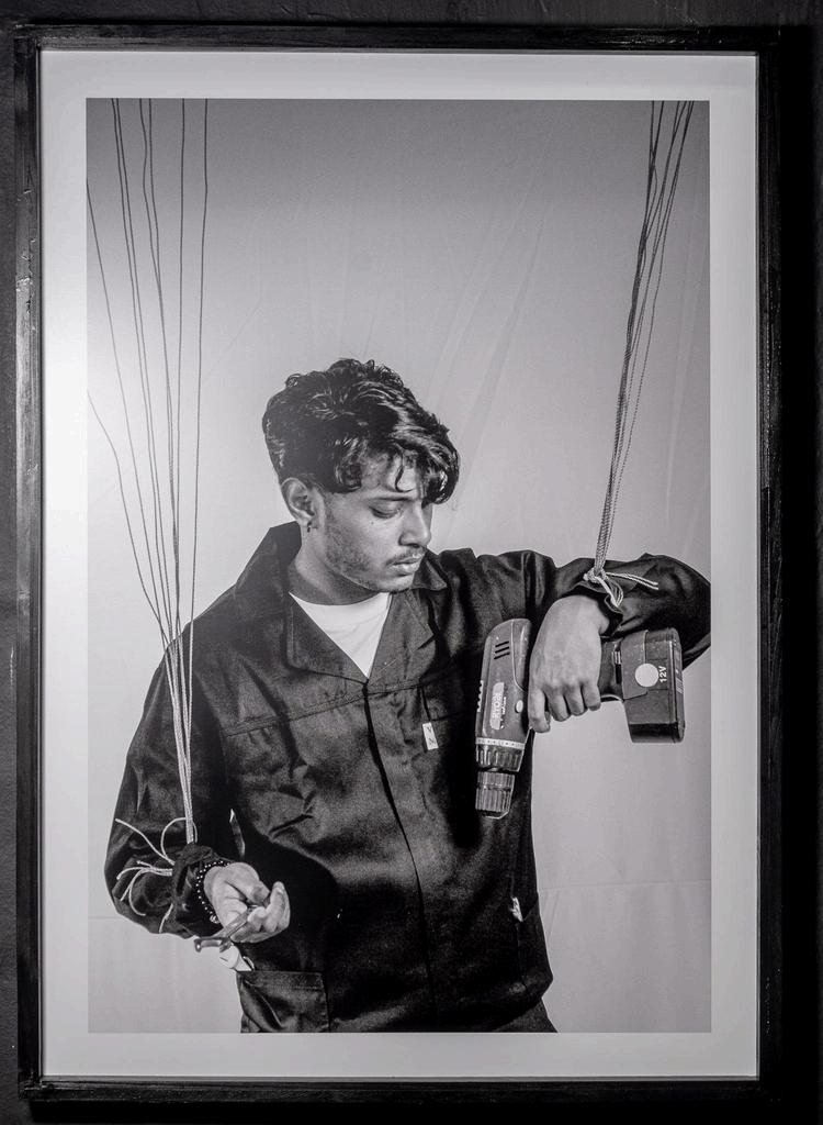 Fig9.DariusNaidoo.TornBetweenTasksI.2024.PhotographicPrintonFoamBoard,