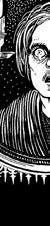 Na mesa em frente à janela aberta havia uma fi leira de cavaleiros com armaduras fantásticas, modelados grosseiramente em argila; ao lado deles, uma pilha de folhas de velino cobertas de desenhos em marrom e verde. Ao lado da porta, havia uma figura de São Miguel apoiada em uma cadeira, e aos pés dele havia copos pintados de todas as cores e formas. Na parede branca havia uma figura alada representando um martírio; seus tons vívidos eram a coisa mais brilhante na sala. O homem estava vestido de marrom; tinha o rosto comprido e o cabelo liso e sem vida. A partir do rolo