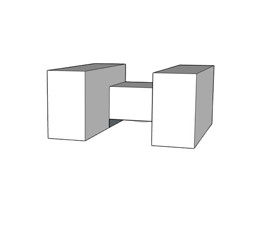 This shape combines two blocks into one cohesive form, where the smaller block intersects the larger one. This creates a clean, balance design with a sense of connection and structure.
