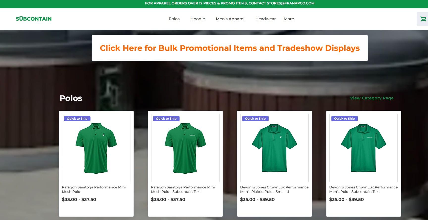 Robust online store solutions for larger franchises who want to purchase in bulk and need ship on demand warehoused inventory.