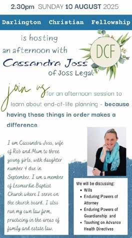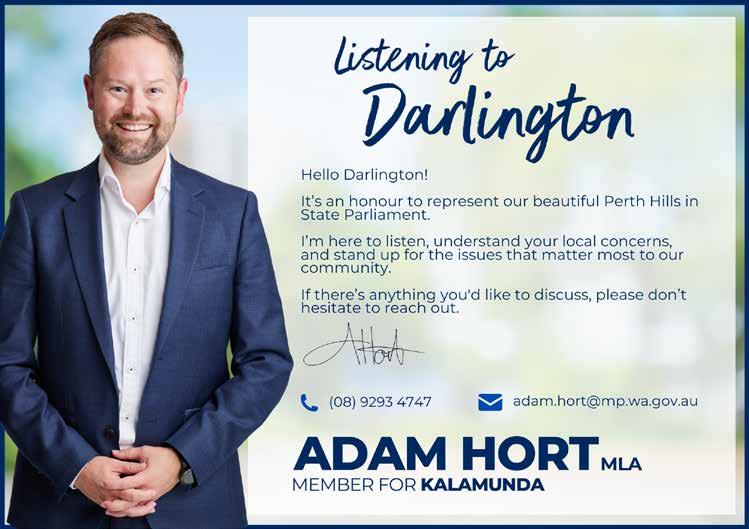 ANNUAL SUBSCRIPTION: You can get a copy of the Review mailed to you if you leave Darlington but want to stay in touch: annual subscription $77 includes mailing within WA. Email: business@darlingtonreview.com.au or phone Betty Pitcher on 0408 912 101 (Publication is printed on PEFC certified 30% recycled paper and uses vegetable inks).