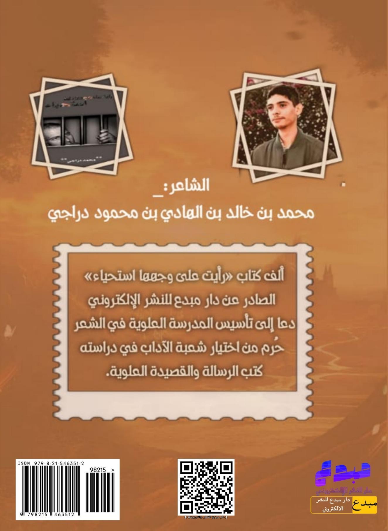 و ةيحتلا عم لا .ةجولف دهعم ةريدم ىليلل ملاس دومحم نب يداهلا نب دلاخ نب دمحم رعاشلا يجارد باتك فلأ « لع تيأر ى ءايحتسا اههجو » رداصلا عدبم راد نع .رشنلل اعد رعشلا يف ةيولعلا ةسردملا سيسأت ىلإ ح ةبعش رايتخا نم مر بادلآا هتسارد يف ةديصقلاو ةلاسرلا بتك .ةيولعلا ءايحتسا اههجو ىلع تيأر باتك ىلع علاطلال انه طغضا