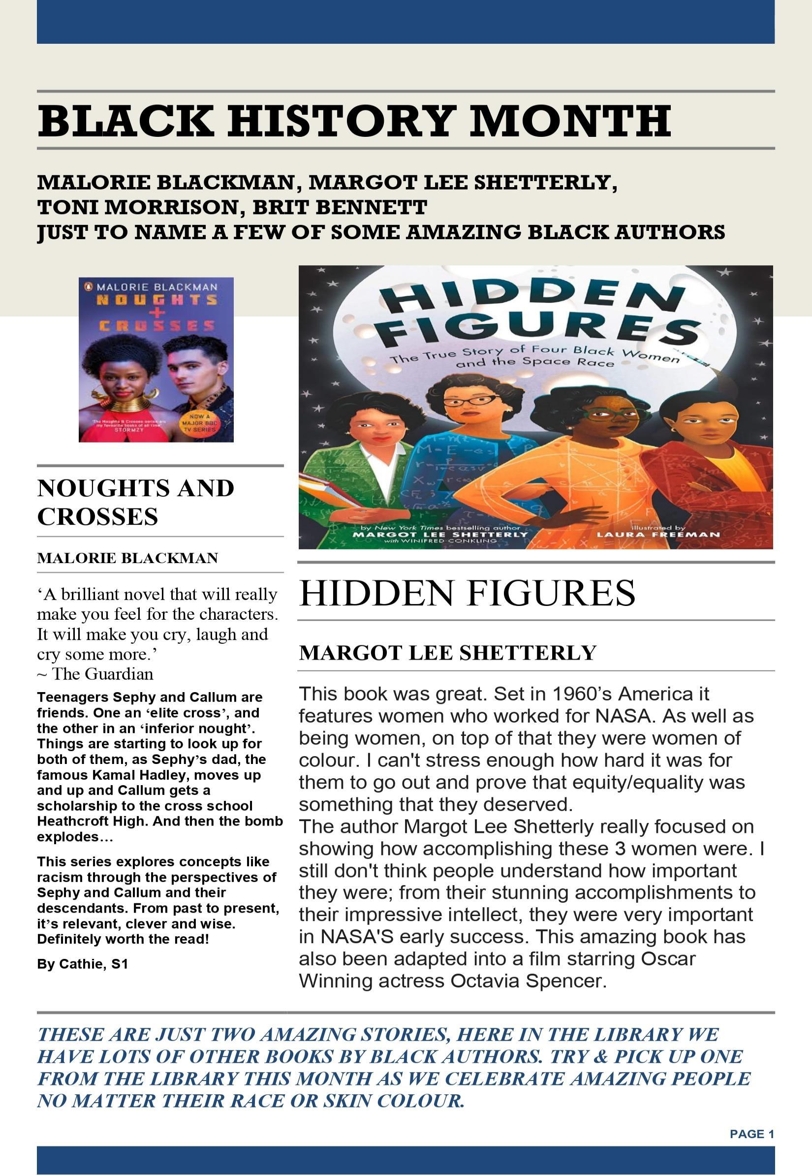 We’ve also been learning all about Black History Month – check out our feature on P. 13. This newsletter has been brought together by the Reading Ambassadors, a group of pupils from S1 to S6 who are passionate about reading and want to promote it across the school. Anyone is welcome to be involved. Please speak to Mrs McConnachie in the Library or Mrs Baxter in English if you want to find out more.