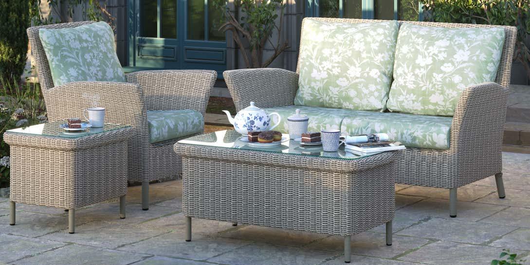 Clean lines, intricate workmanship and cosy cushions make the Wilton range the ideal suite for any small patio area.