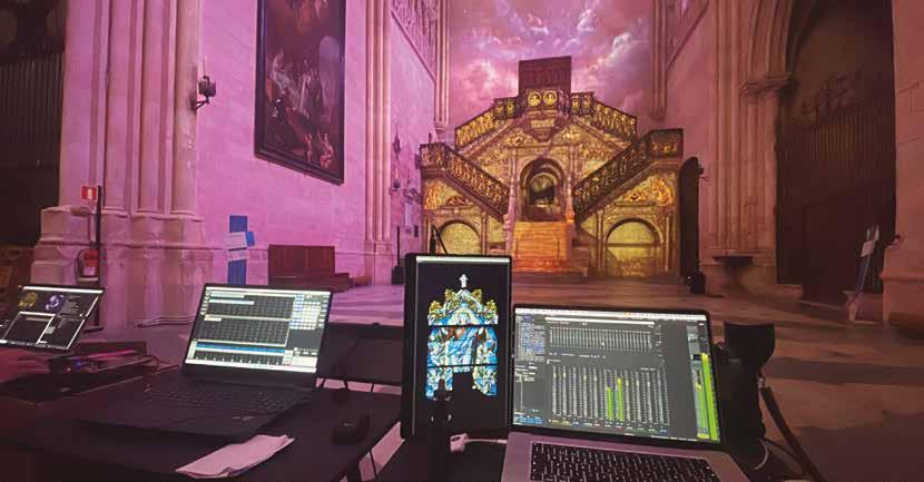 microfonía y otra 251 móvil en flightcase para escenario, unidas y controladas por la consola mediante conexión a sus puertos AES50. La transmisión punto a punto por AES50 pretende asegurar 24 canales por línea con la mínima latencia posible. El resto del sistema y de la infraestructura de audio, además de la conversión desde analógico a AES50, incluye enlaces vía MADI, Dante y AES3. La interoperabilidad entre ellos se realiza mediante un interfaz Orion 32+ Gen 4 de Antelope y un conversor multiformato MVR MKII con módulo SRC-128 de Appsys, que además permite la conversión de frecuencias de muestreo en caso de necesidad de salir del ámbito de los 96 kHz.