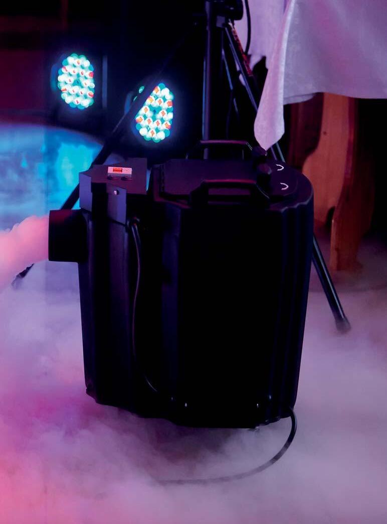 Fogger Ice o Low Fog: estas máquinas funcionan con líquido de humo estándar y un cubo de hielo que permite enfriar el humo resultante y mantenerlo a ras de suelo.