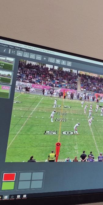 Furthermore, a program feed with virtual advertising and the 1st and 10th lines added by Viz Arena can be sent back to a European League of Football match stadium via the cloud for display on the audience’s big screen with no noticeable delay from the real-time game action.